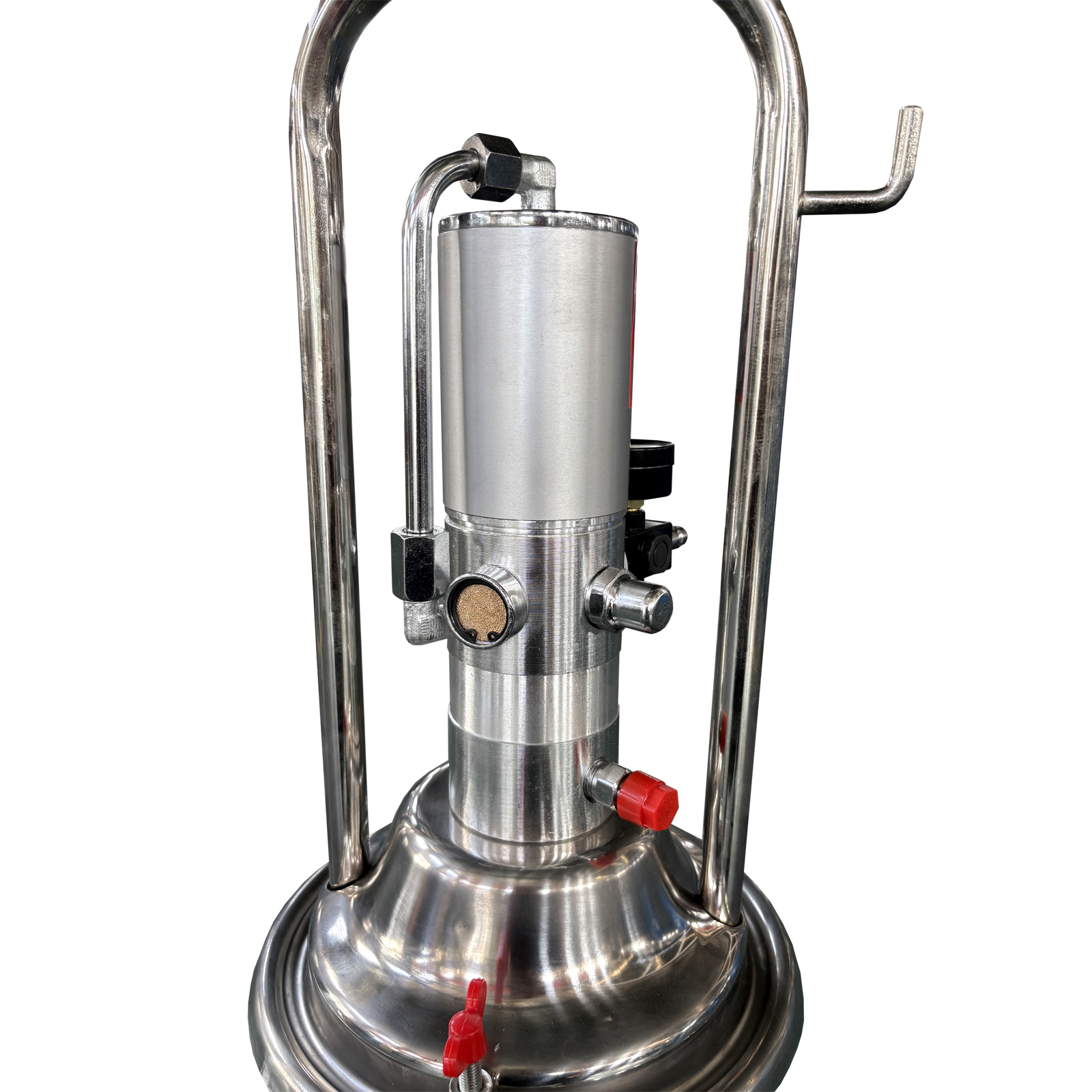 Конструкция состоит из бака для смазки объемом 12 л, насосного агрегата с пневмоприводом, шланга высокого давления, быстросъемного соединителя и раздаточного пистолета. Для удобства перемещения устройство оснащено ручкой для переноски, имеет устойчивые опоры.