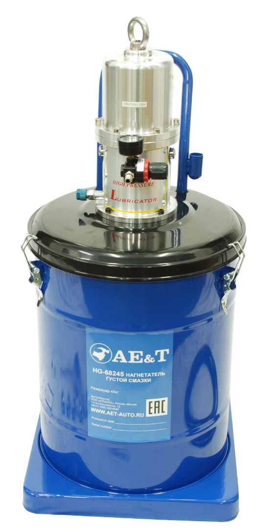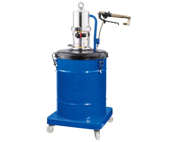 Нагнетатель густой смазки HG-68245 при помощи пневматического насоса создает высокое давление, заставляющее сжиматься консистентную смазку. Смазочный материал под давлением подается в пистолет-распылитель, а затем может дозировано распределяться по смазываемым частям механизмов.
