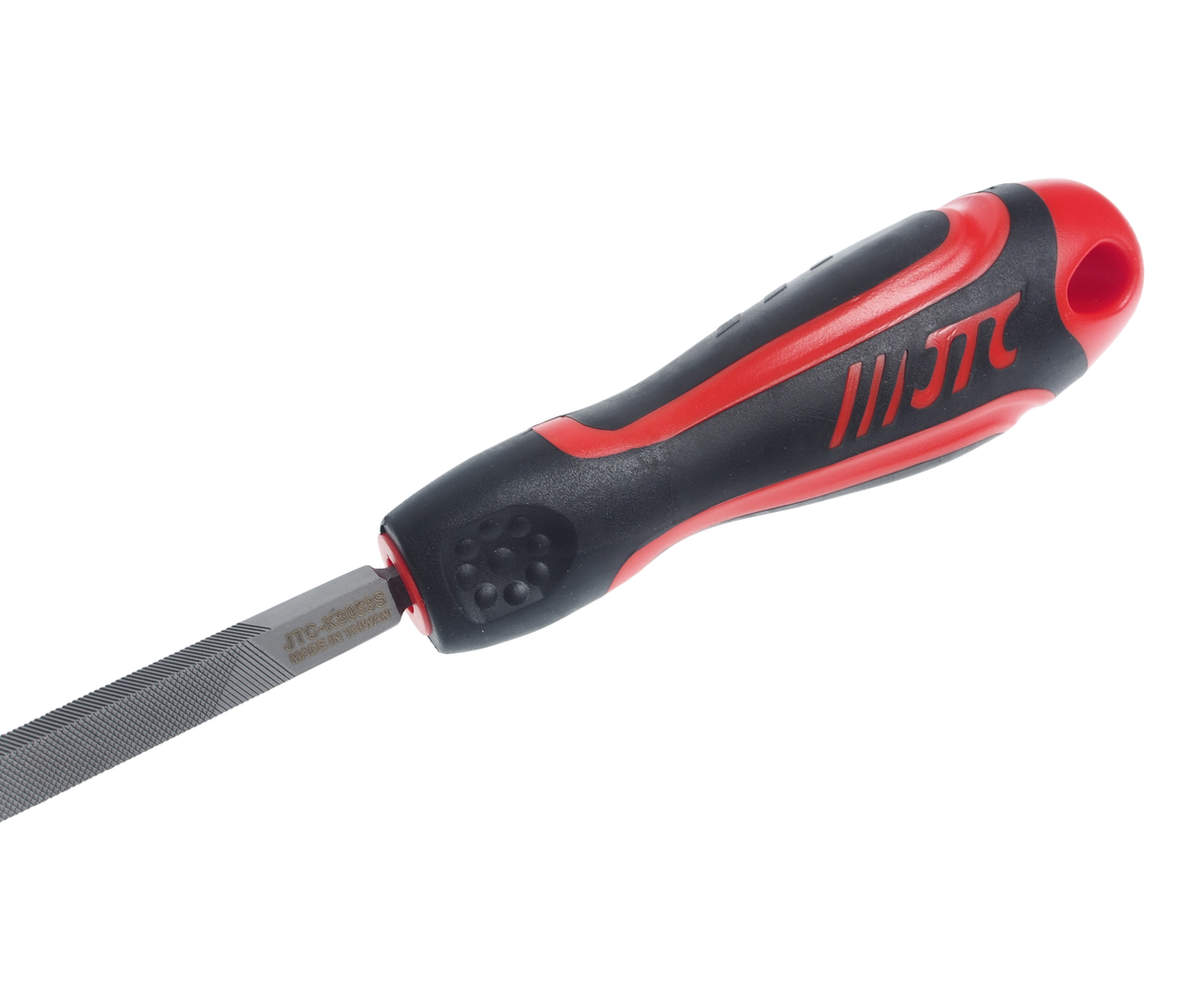 Квадратный напильник JTC-K8053S со средними зубьями имеет длину в 200 мм и прорезиненную анатомическую рукоятку с отверстием для подвешивания инструмента.