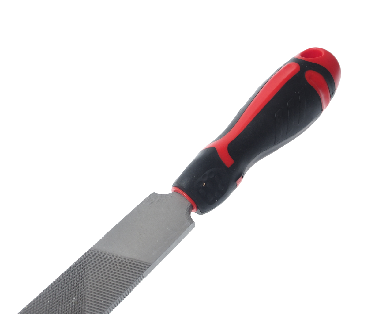 Напильник предназначен для обработки изделий из разных материалов, для придания им нужных форм и размеров, а также для стачивания всех неровностей и зачистки поверхности до требуемых норм. Применяется в слесарных мастерских, автосервисах, на производствах металлоконструкций, в строительстве и т.д. Полотно напильника изготовлено из высококачественной стали и подвергнуто дополнительным обработкам. Твердость составляет 60 HRC. Эргономичная двухкомпонентная рукоятка (PP + TPV) разработана для передачи повышенного усилия на обрабатываемую деталь, не скользит в руке, обладает стойкостью к маслам, бензину и прочим химическим веществам. Отверстие в рукоятке позволяет подвесить напильник на рабочем месте.