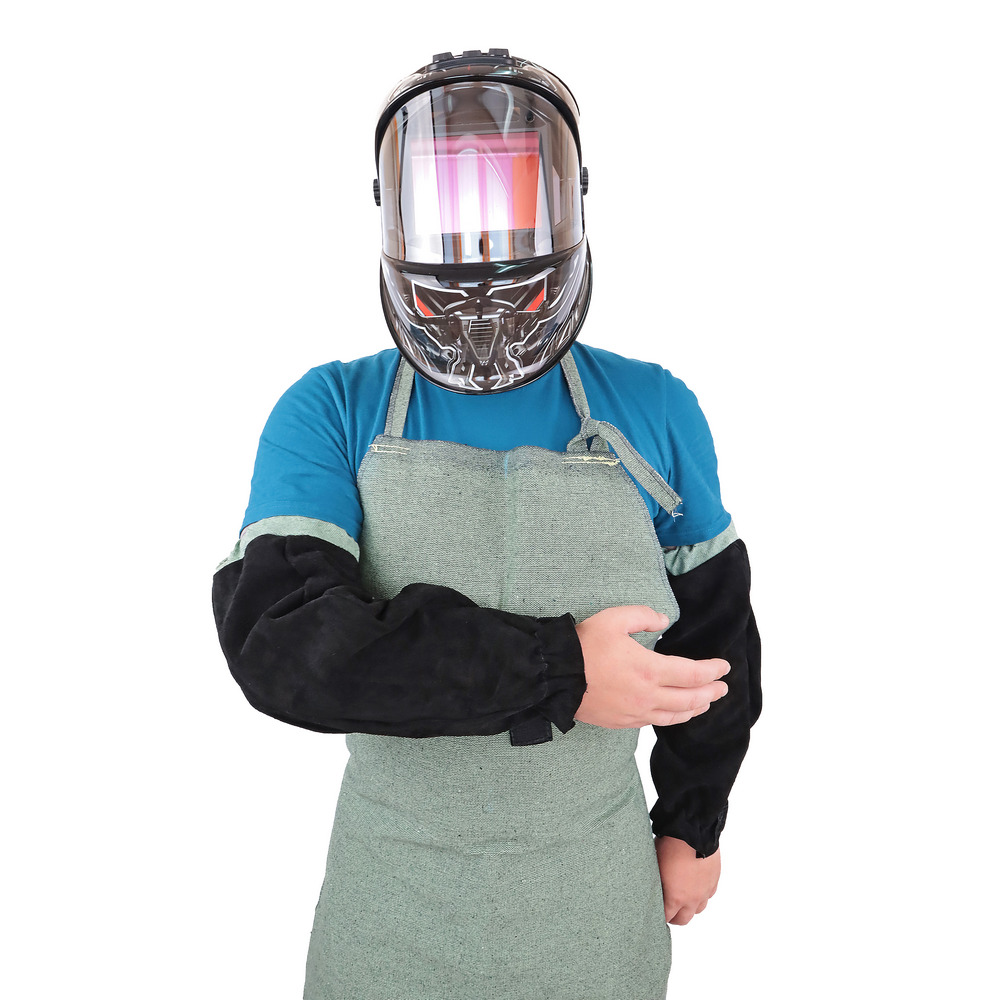 Сварочные нарукавники из спилка с универсальным креплением на «липучке» обеспечивают плотное прилегание элемента спецодежды к руке сварщика, гарантируя полную защиту запястья, предплечья и локтя при сварочном процессе.КЕВЛАРОВЫЕ НИТИ: Швы прошиты прочной огнестойкой нитью Kevlar, что придаёт дополнительную прочность нарукавникам и защищает запястье, предплечье и локоть при сварочных работах.ПРЕИМУЩЕСТВА:Плотное прилегание к краге за счет вшитой резинкиПродлевает срок службы основной одежды сварщикаПрошивка швов кевларовой (арамидной) нитью