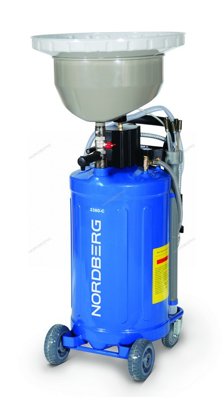 Установка NORDBERG 2380-C удаляет отработанное масло и другие жидкости из любого транспортного средства при помощи вентури-вакуумной вытяжной системы.