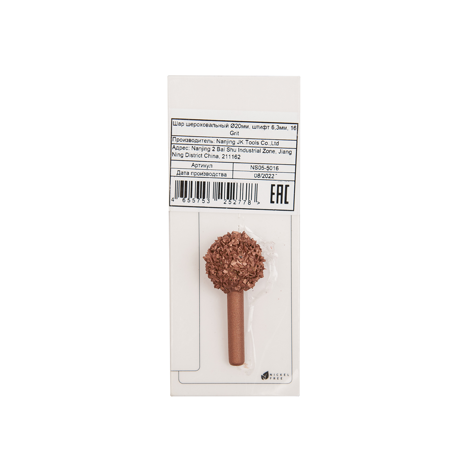 NS05-5016 Шар шероховальный Ø20мм, штифт 6,3мм, 16 Grit