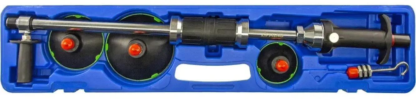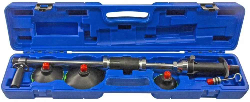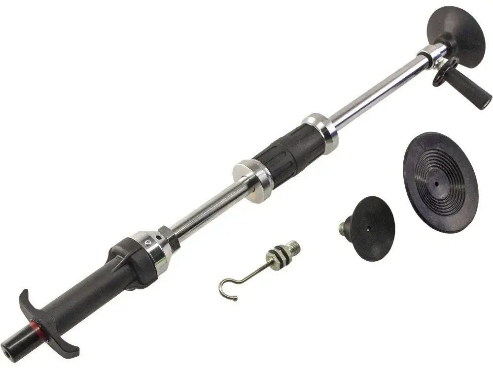 - Обратный молоток с встроенным насосом и присосками разных размеров (75, 100 и 125 мм) - это профессиональный инструмент для ремонта и выпрямления вмятин на металлических и пластиковых поверхностях автомобилей и других объектов.