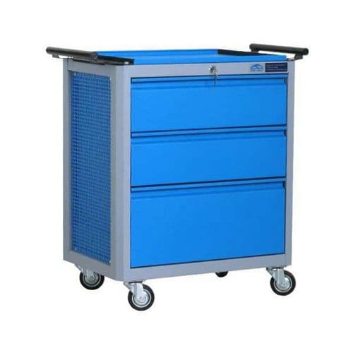 Тележка инструментальная АС–1230-06. Покрытие полимерно-порошковое (ударо-масло-влагостойкое). Стандартный цвет: корпус серый (шагрень) RAL 7001. Панель перф. боковая, верхний лоток, задняя стенка и ящики – синий (шагрень) RAL 5012