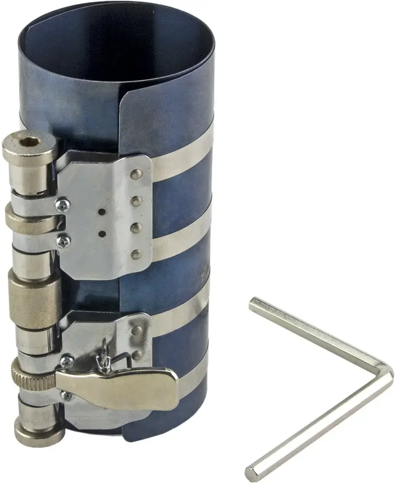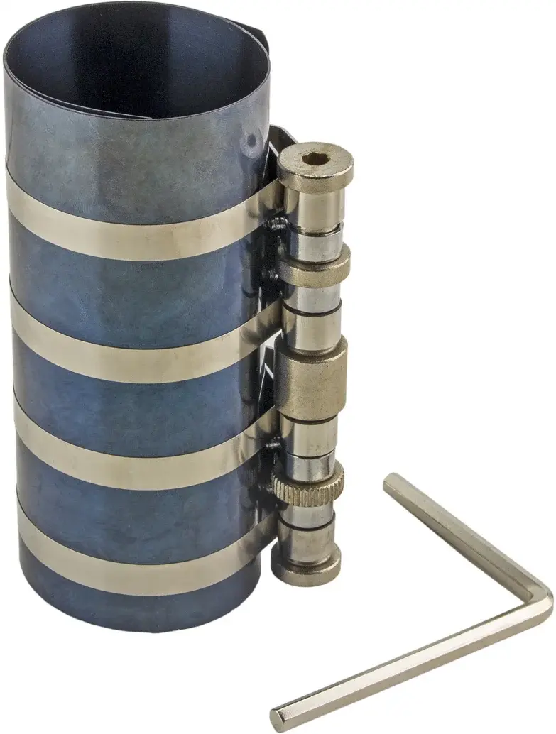 - Сжатие поршневых колец при установке поршней в блок цилиндров двигателя.