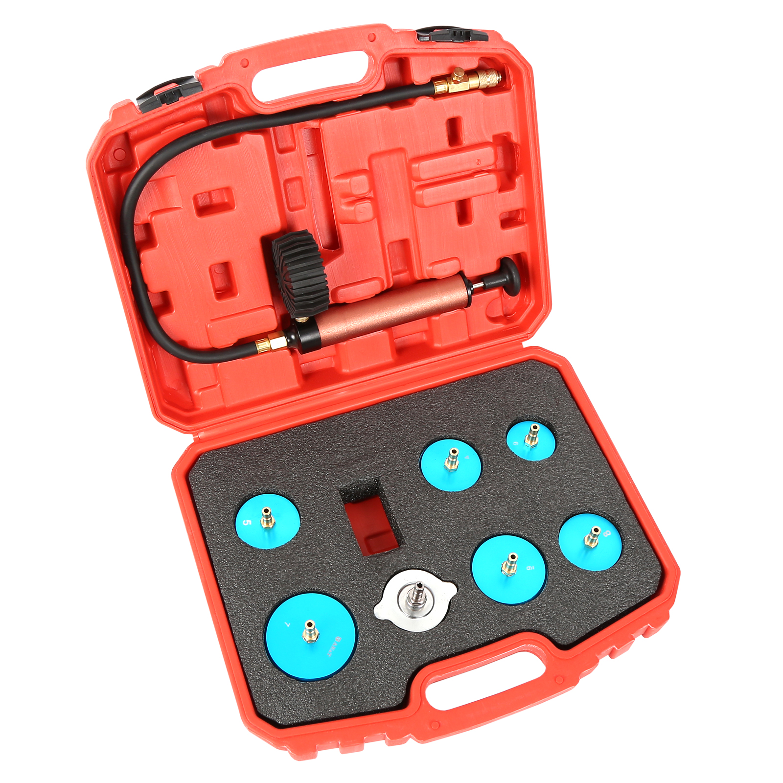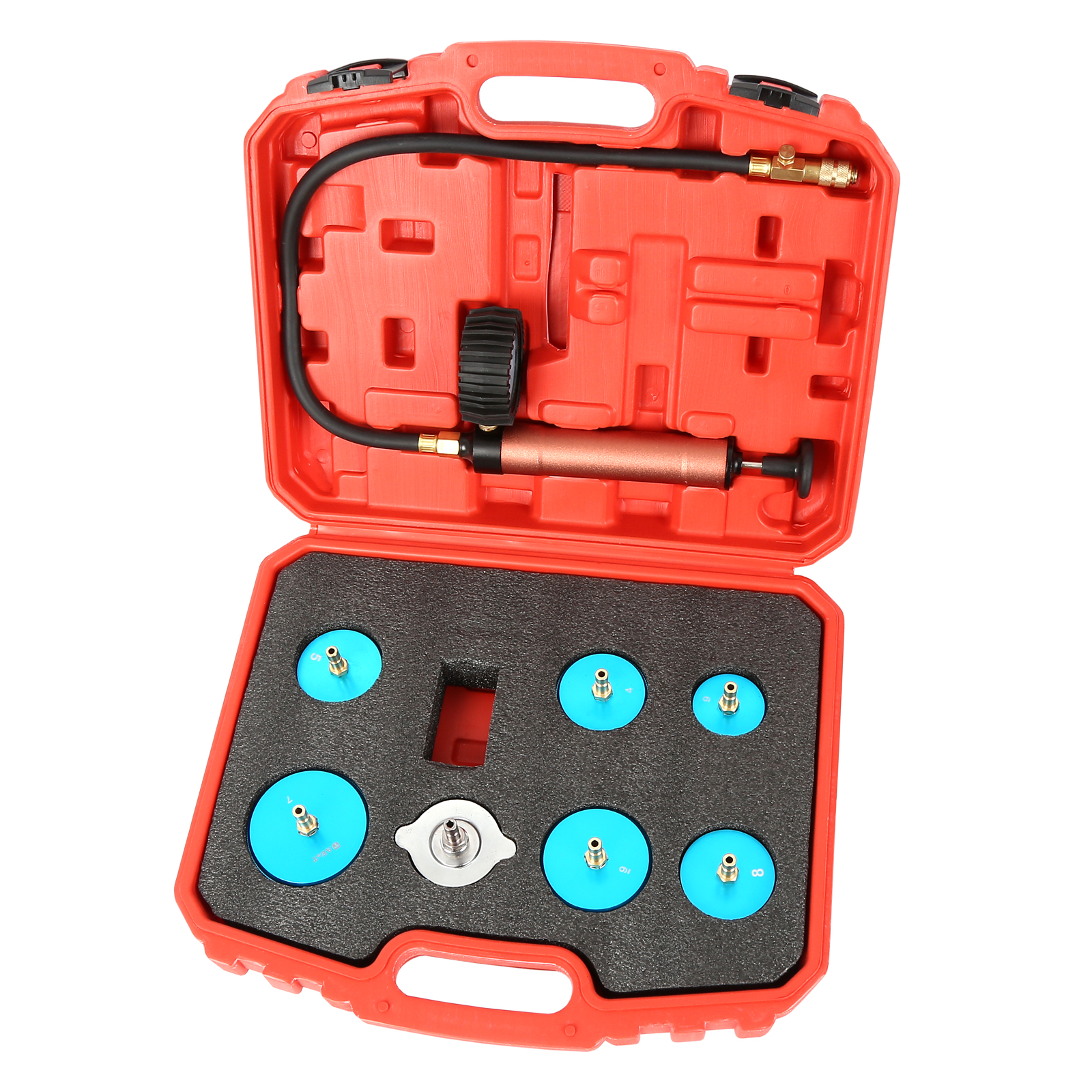 Тестер системы охлаждения включает в себя все необходимое для устранения утечек в радиаторе, шлангах и других элементах:
