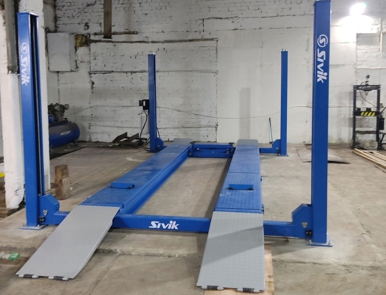 - Четырехстоечные подъемники: Важна равномерность подъема, надежность фиксации на высоте, состояние траверс и роликов.