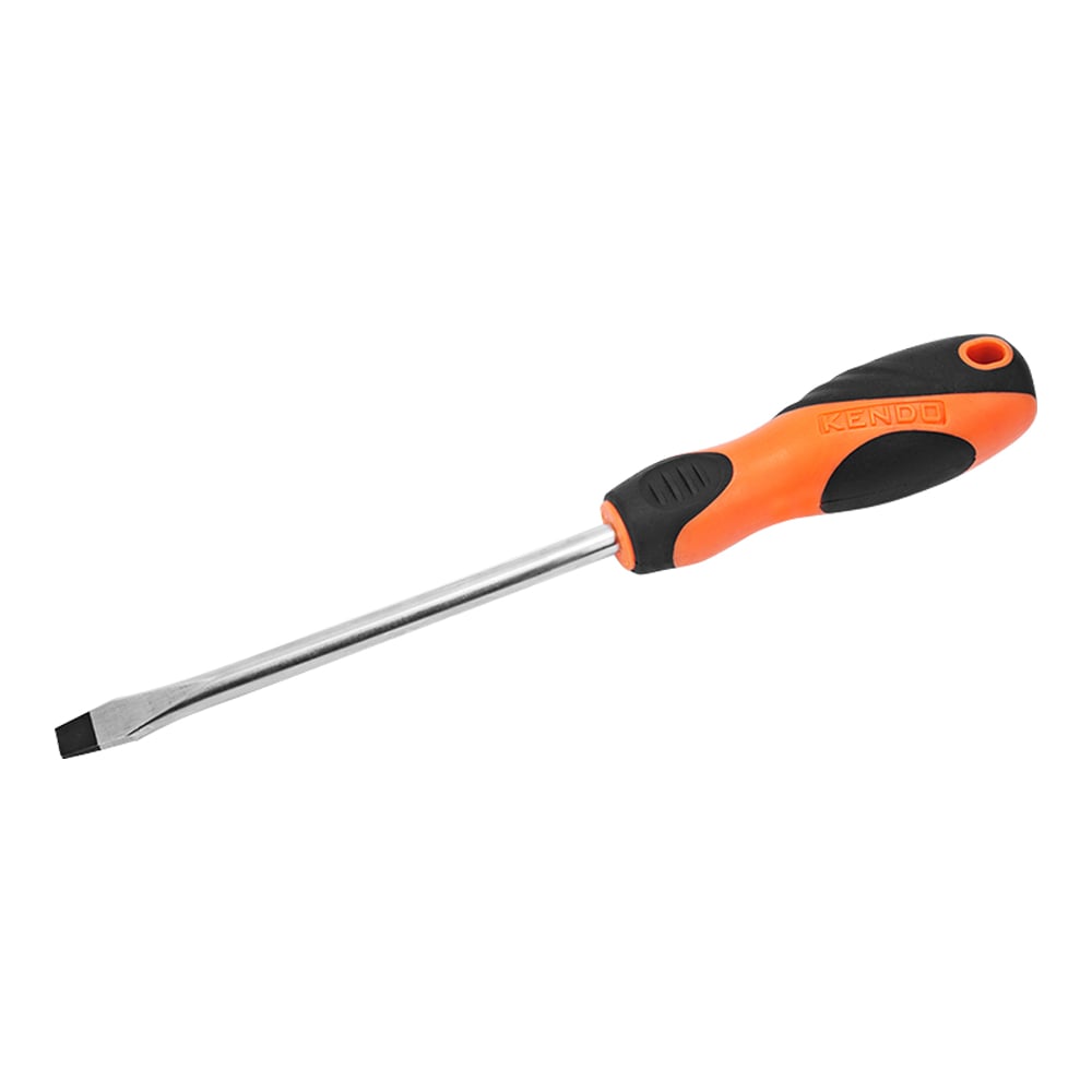 Отвертка KENDO SL6x100 мм 20111 предназначена для работы с крепежом, имеющим прямой шлиц.  Рабочий стержень выполнен из закаленной хромованадиевой стали Cr-V, обеспечивающей долговечность инструмента. Магнитный наконечник и не скользящая двухкомпонентная ручка из TPR позволяют удобно и комфортно работать продолжительное время.