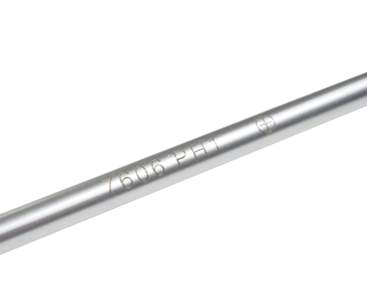 Стержень отвертки стальной. Покрыт сатин-хромом, жало оксидировано.