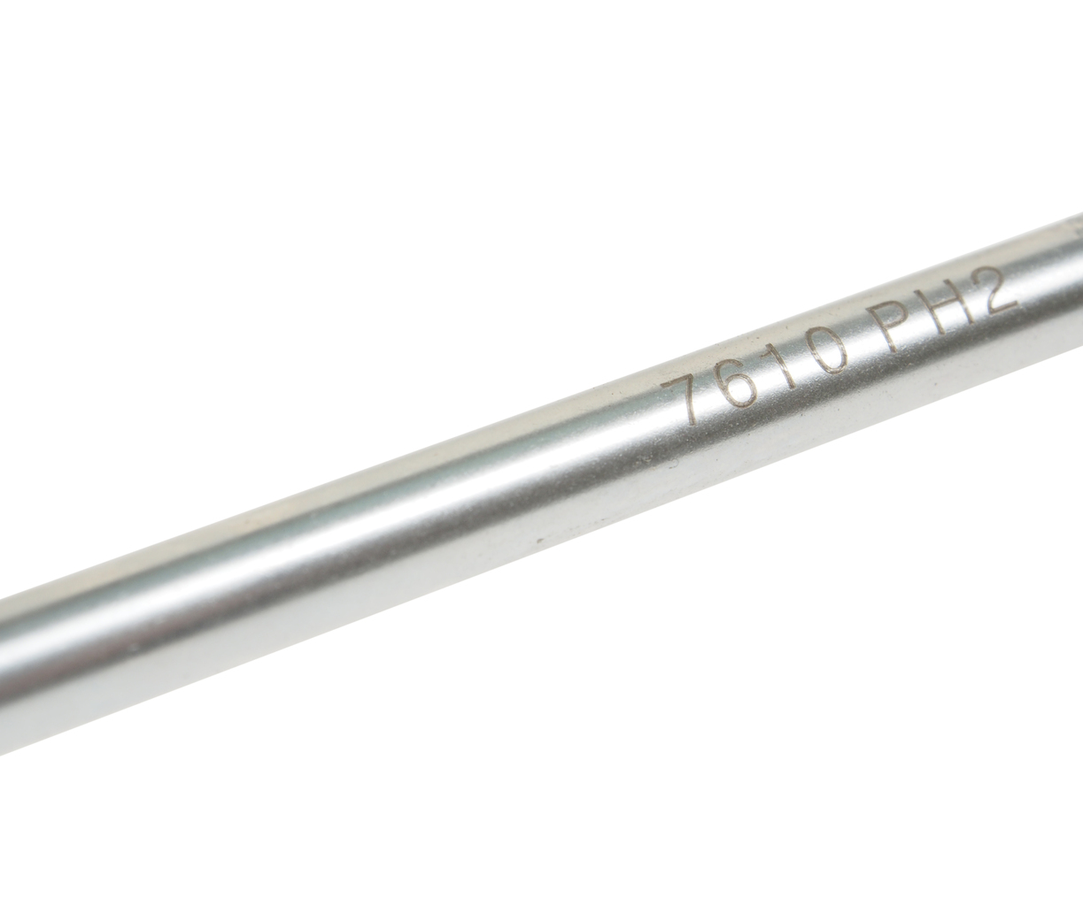 Стержень отвертки стальной. Покрыт сатин-хромом, жало оксидировано.
