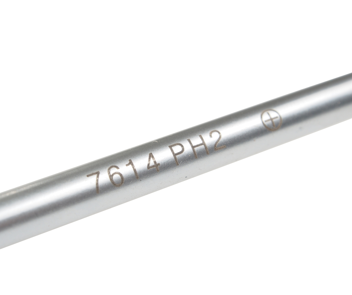 Стержень отвертки стальной. Покрыт сатин-хромом, жало оксидировано.