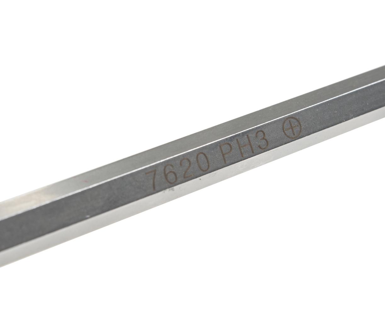 Стержень отвертки стальной, сквозной, шестигранный. Покрыт сатин-хромом, жало оксидировано.