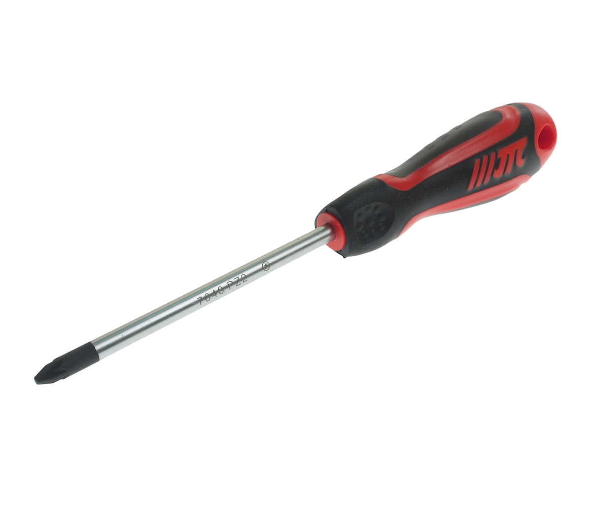 Стержень отвертки стальной. Покрыт сатин-хромом, жало- оксидировано.