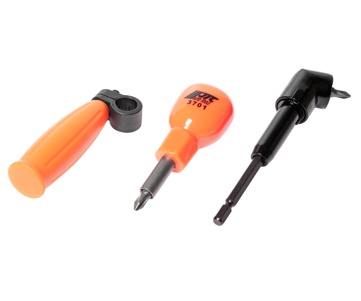 Отвертка с угловым переходником 90 градусов с набором бит JTC