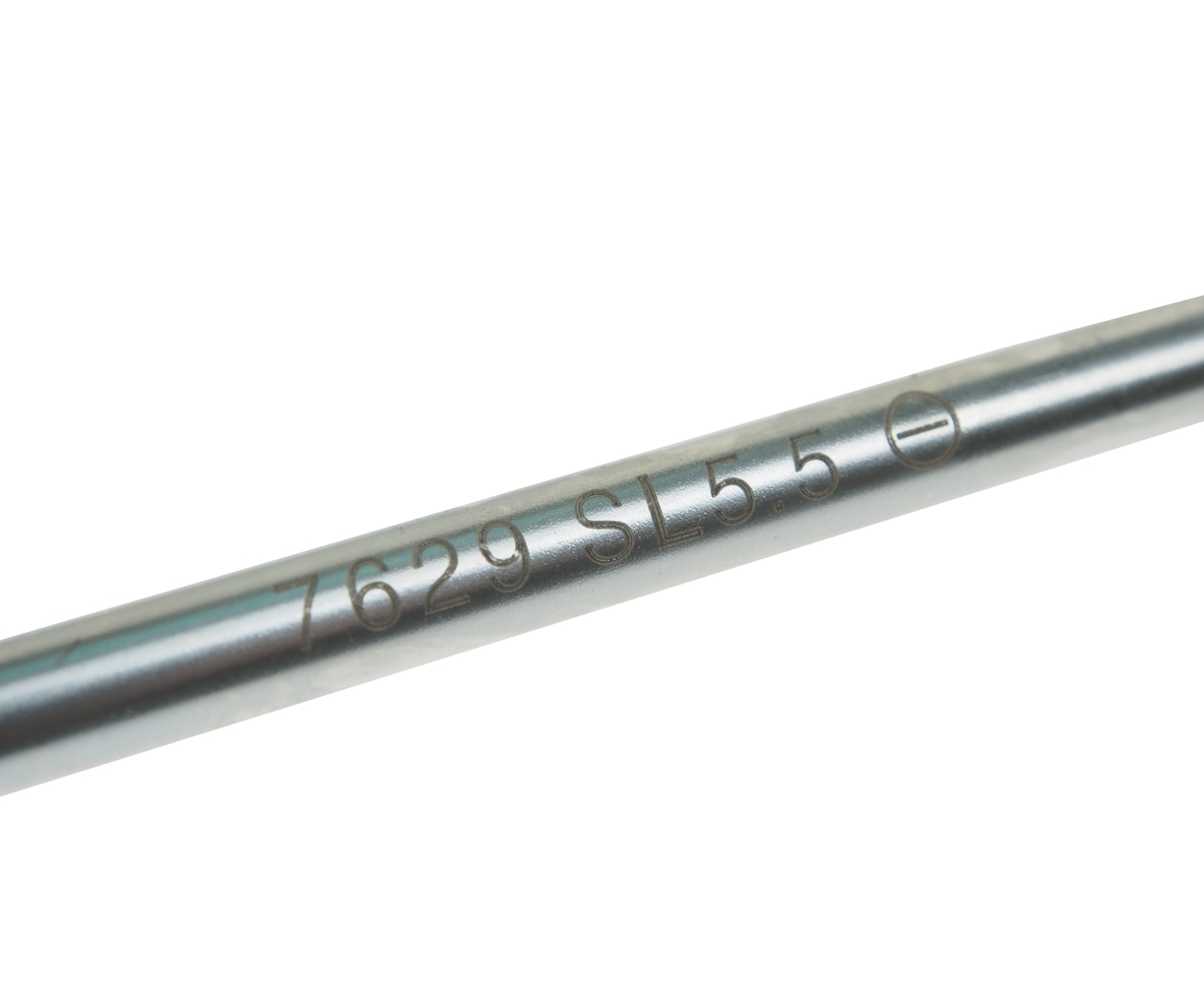 Стержень отвертки стальной. Покрыт сатин-хромом, жало оксидировано.