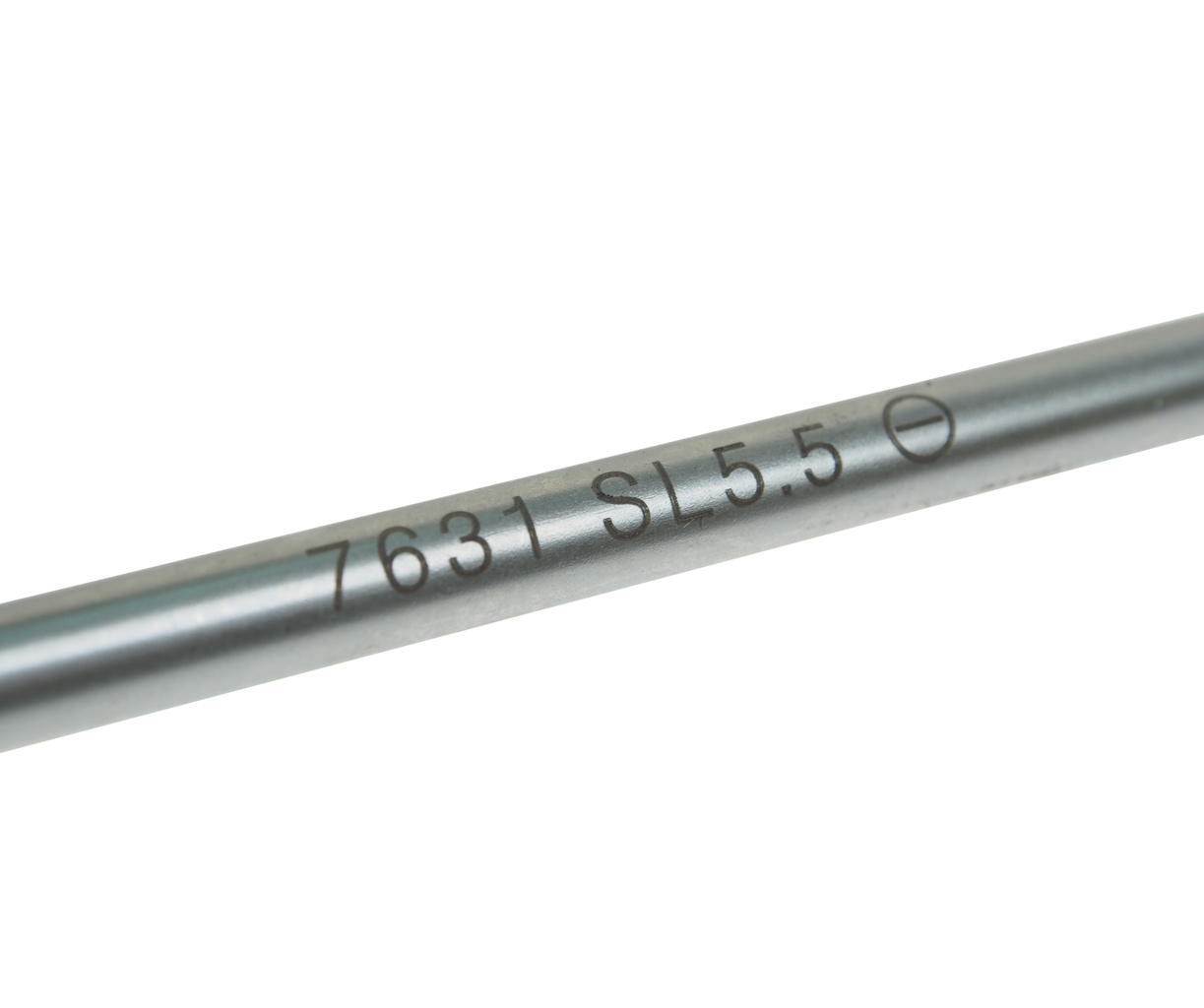 Стержень отвертки стальной. Покрыт сатин-хромом, жало оксидировано.