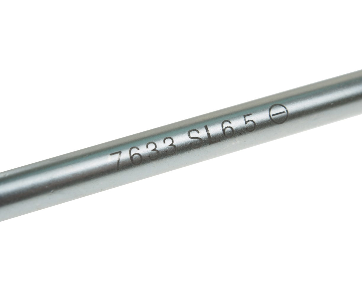 Стержень отвертки стальной. Покрыт сатин-хромом, жало оксидировано.