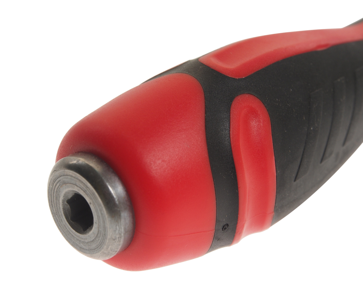 Стержень отвертки стальной, сквозной, шестигранный. Покрыт сатин-хромом, жало оксидировано.