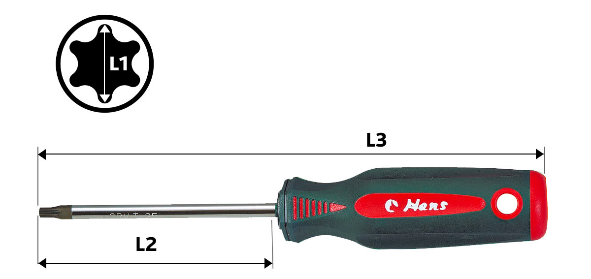 Отвертка Torx с отверстием TH20*100мм, Hans, 0450TH20