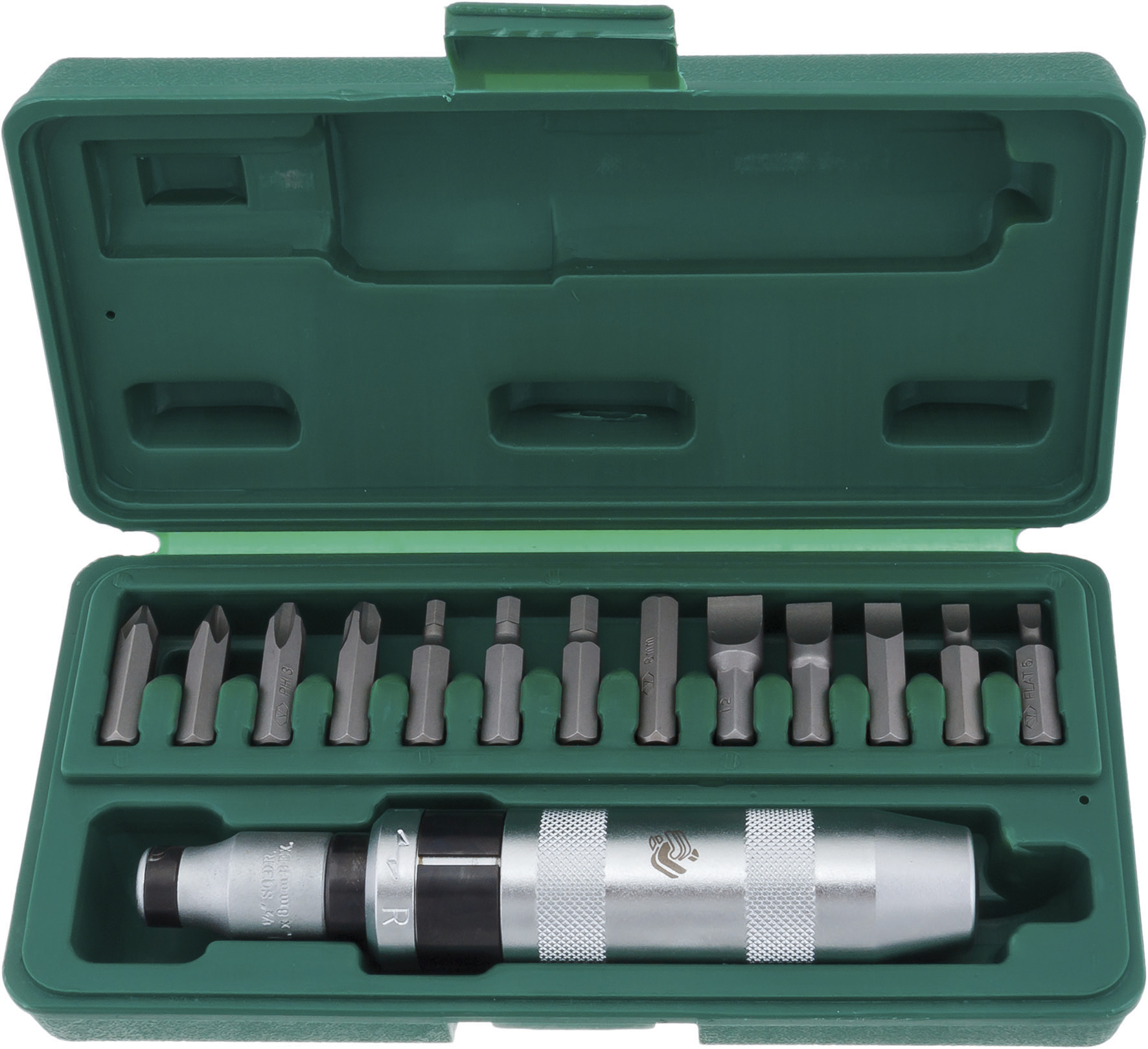 отвертка ударная биты 36 мм: Philips: 1;2;3;4 шлицевые: 5;6;8;10;12 шестигранные: 4;5;6;8