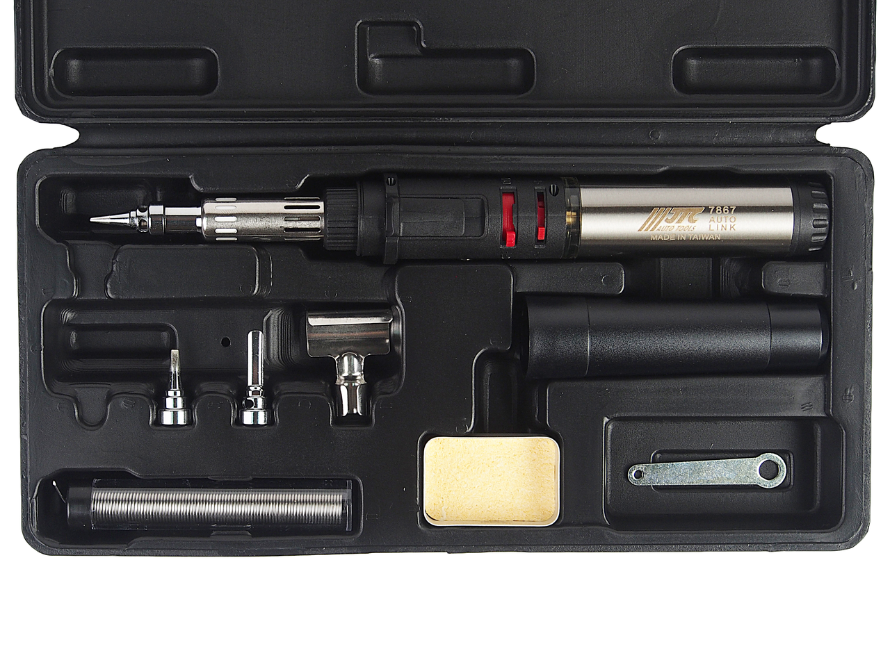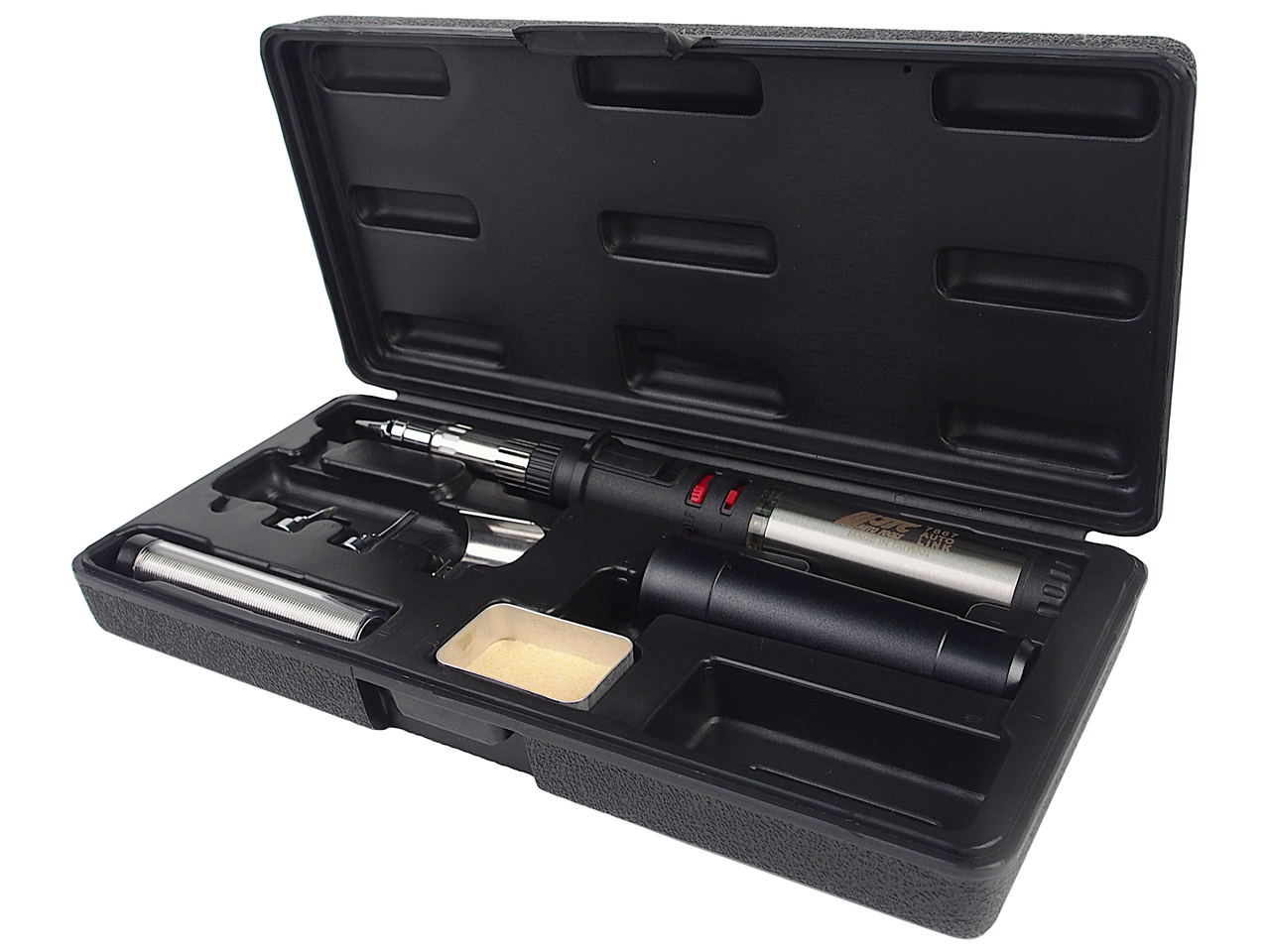 Инструмент три-в-одном с защитным колпачком: паяльник, тепловой вентилятор, газовая горелка.