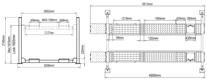 - Регулируемая по ширине колея между платформами позволяет без труда проводить работы с узкими и широкими автомобилями.