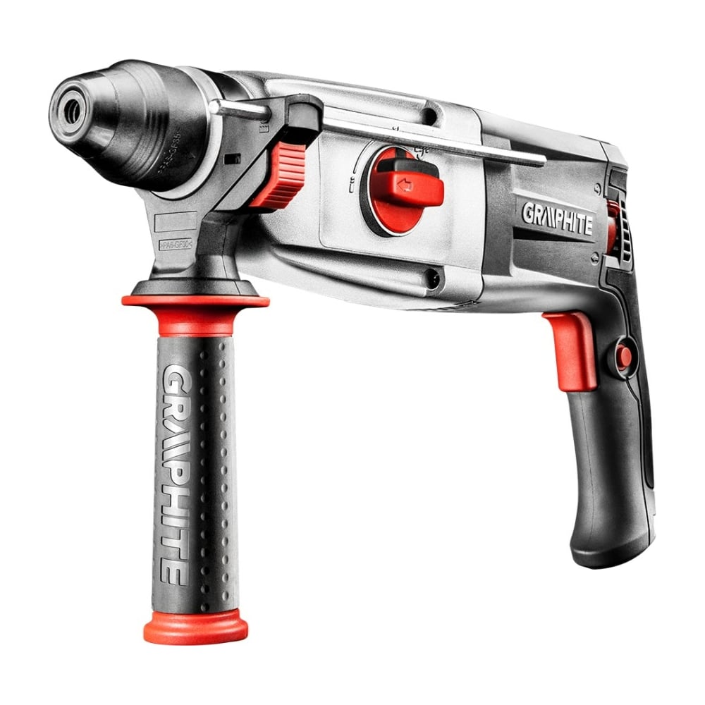 Перфоратор GRAPHITE 58G528 предназначен для сверления отверстий в бетоне, металле и древесине, а также для демонтажных работ в режиме долбления. Данная модель имеет регулировку оборотов, что позволяет работать с различными материалами. Нескользящая накладка на рукоятке повышает безопасность и точность при использовании благодаря надежному хвату. Функция блокировки включения снижает нагрузку на руки оператора при продолжительных работах.
