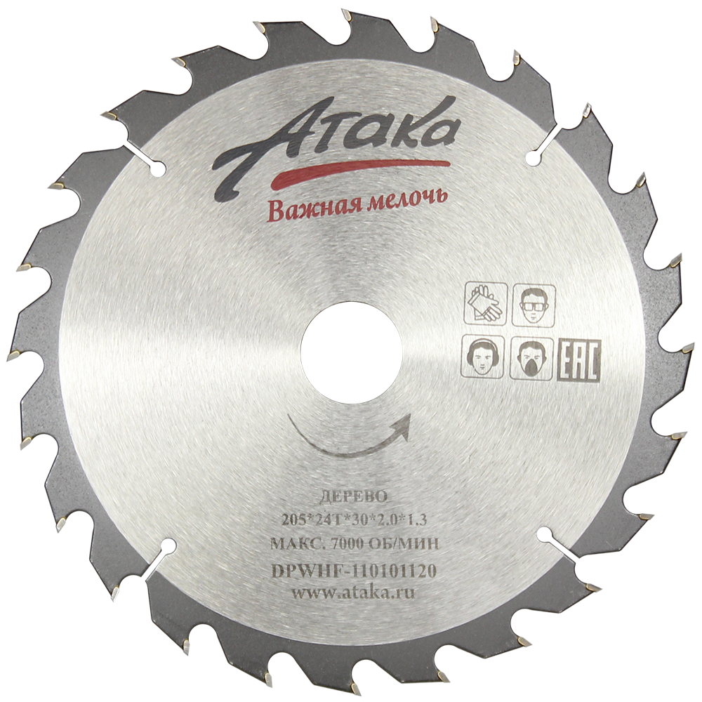 Пильный диск по дереву Атака 205*24T*30 быстрый профи