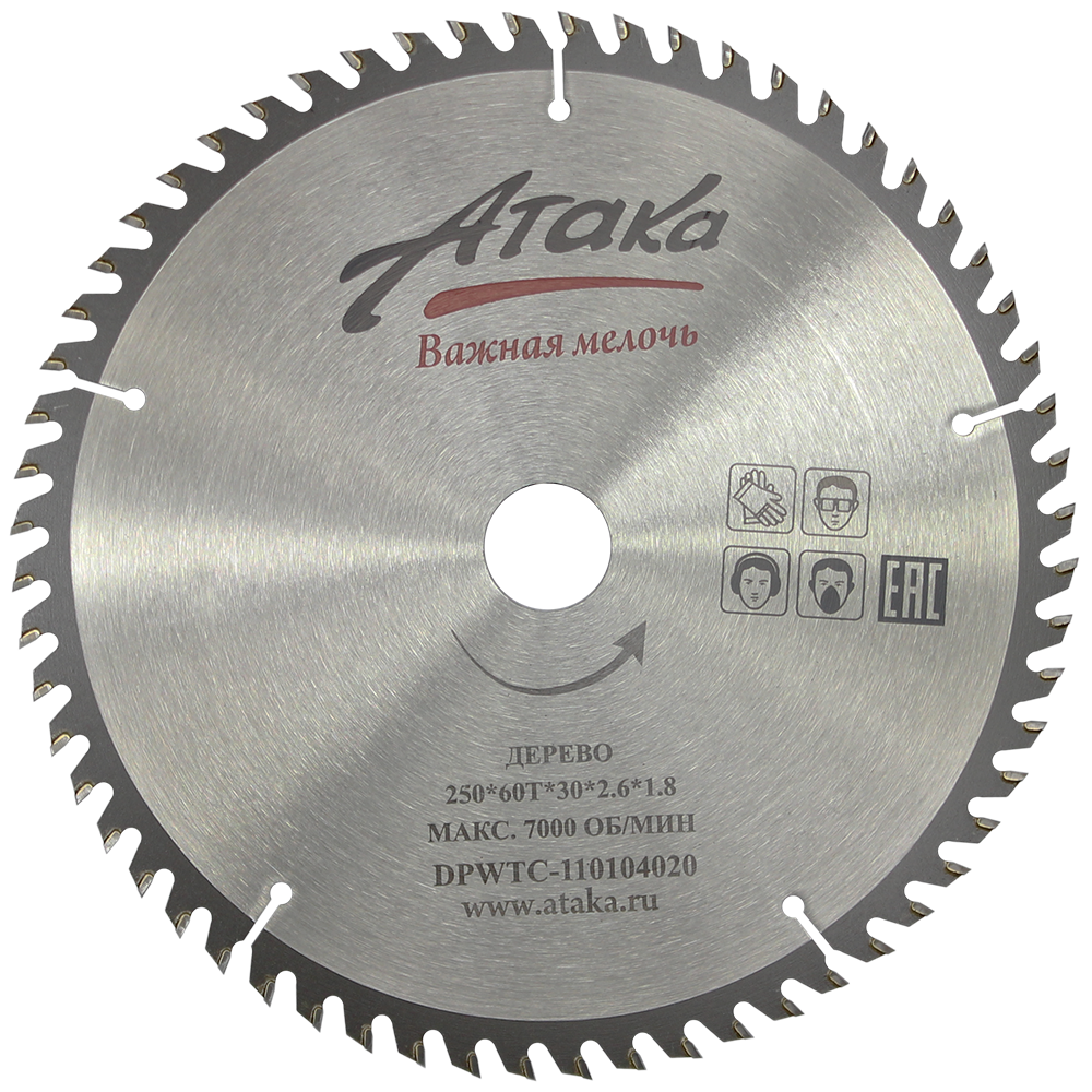 Пильный диск по дереву Атака 250*60T*30 ч/рез профи