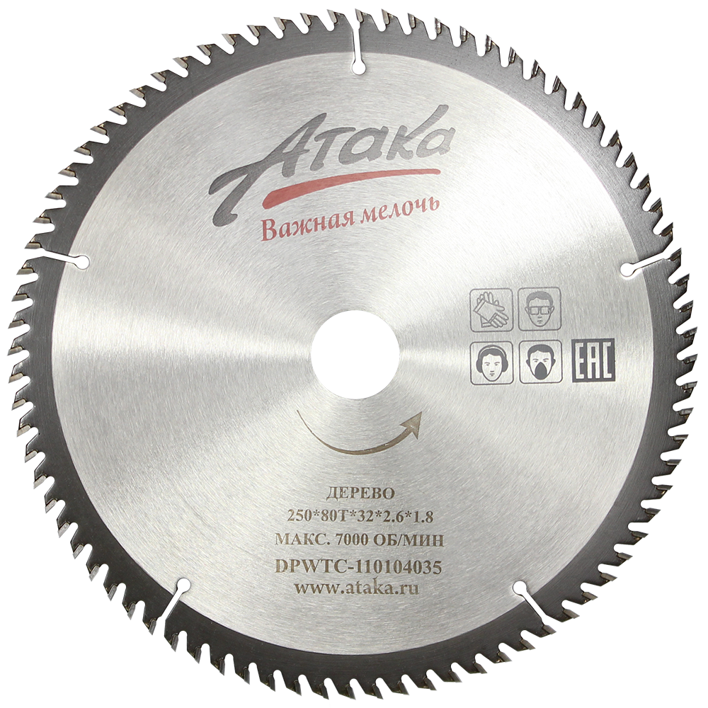 Пильный диск по дереву Атака 250*80T*30 ч/рез профи