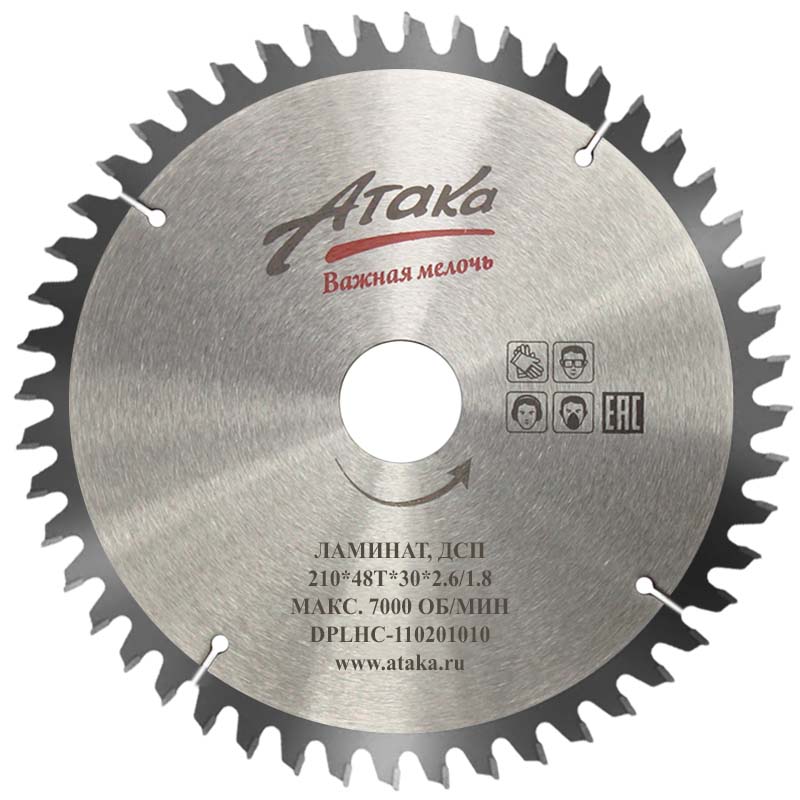 Пильный диск по ламинату и ДСП Атака 210*48T*30 быстрый профи