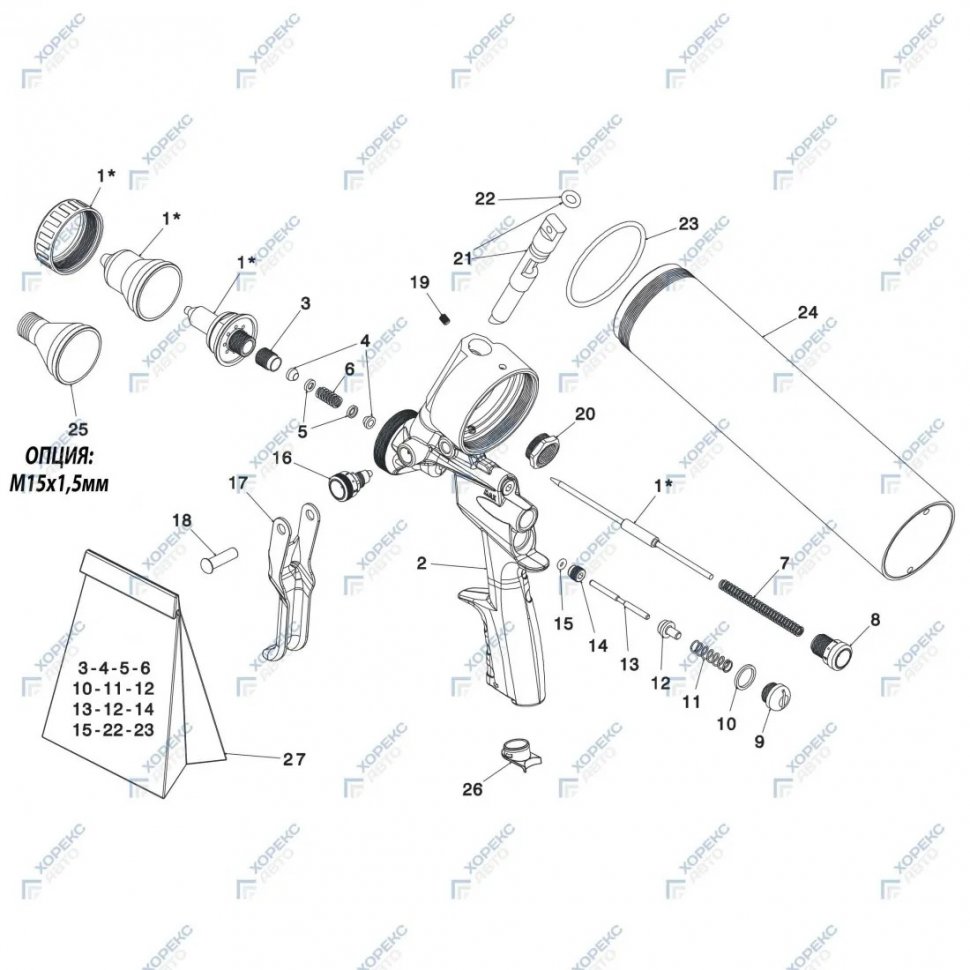 Пистолет пневматический для нанесения распыляемых однокомпонентных герметиков F1/SAM MY2020 11/A, арт. № AH1801011A с насадкой, арт. № BS099270, ИТАЛИЯ ANI horex