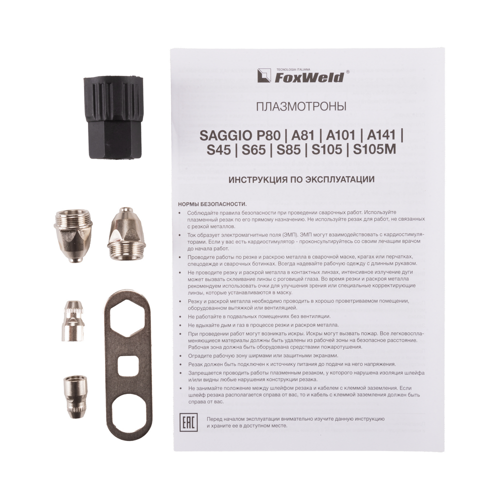 Плазмотрон SAGGIO P80 предназначен для полуавтоматической (ручной) воздушно-плазменной разделки металлических деталей и конструкций. Предназначен для работы с любым источником плазменной резки (Plasma CUT) при соответствии технических параметров. Плазмотрон комплектуется кабель-шлангом длиной 6 метров.ТОЛЩИНА РЕЗА ДО 20 ММ: Благодаря высоким динамическим характеристикам дуги и стабильному току резки с помощью этой модели плазмотрона можно разрезать металл толщиной до 20 мм.ПРЕДОХРАНИТЕЛЬ КУРКА: Специальный предохранитель исключает случайное нажатие, препятствуя незапланированному включению плазмотрона, и повышает безопасность работы.ЭРГОНОМИЧНОСТЬ: Благодаря продуманному контурному дизайну, разработанному специально для удобного хвата, рукоятка плазмотрона идеально лежит в руке.ГИБКИЙ РУКАВ: Силовой кабель обеспечивает превосходную гибкость, увеличивает срок службы и снижает рабочую температуру. Дополнительная защита шлангового пакета повышает гибкость, обеспечивая максимальный комфорт.ДЕЖУРНАЯ ДУГА: Дежурная дуга плазмотрона (PILOT ARC) – это первичная дуга между электродом и соплом, которая направляется за счёт сжатого воздуха к поверхности. В момент контакта с разрезаемым материалом дежурная дуга гаснет и загорается режущая дуга, что обеспечивает «доступ» режущей дуги к основному материалу. Благодаря этому плазменная струя не гаснет даже на металлической сетке.ПРЕИМУЩЕСТВА:Предохранитель на кнопке включения гарантирует безопасностьВысокие электроизоляционные свойстваУвеличенная площадь рассеивания тепла и оптимизированный воздушный потокБыстрая и лёгкая замена комплектующихФУНКЦИОНАЛЬНЫЕ ОСОБЕННОСТИ:БЕЗОПАСНОСТЬ РАБОЧЕГО ПРОЦЕССА: Плазменная резка намного безопаснее и экологичнее газовой резки. Источник питания, плазмотрон и компрессор (иногда встроенный в аппарат) – вот всё, что нужно для начала работы. Отсутствие взрывоопасности (никаких баллонов с газом) и загрязнения окружающей среды из-за метода сжигания топлива выгодно отличает плазменную резку от газовой.