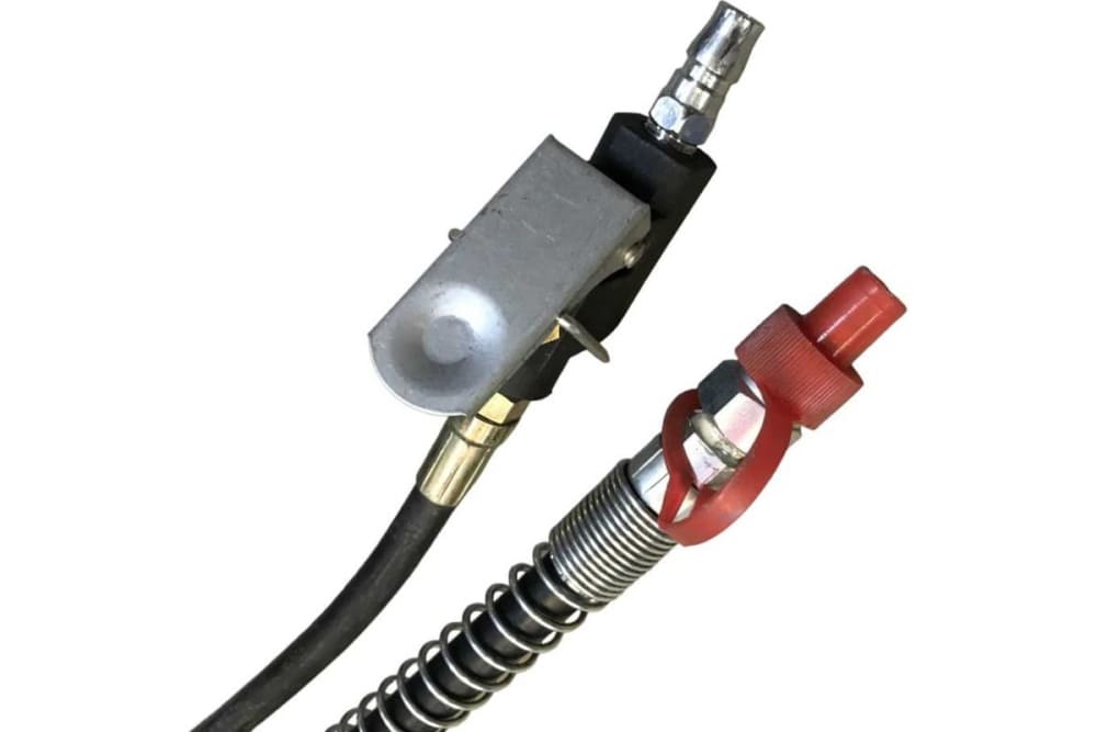В комплекте два рукава: пневматический с запорным клапаном, гидравлический с быстросъёмным резьбовым соединением.