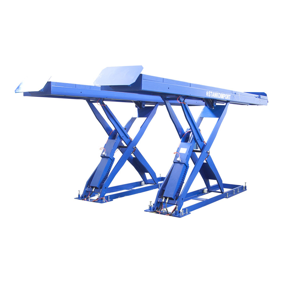 ПНГУ-4.0 Подъемник ножничный со вторым уровнем под сход-развал Грузоподъемность 4 тонны Грузоподъемность второго уровня 3 тонны Максимальная высота подъема 1850мм Высота подъема второго уровня 450мм Общая длина платформ 4500 Время подъема 50 секунд Время опускания 60 секунда Электропитание 380 Мощность двигателя 2.2 Kw Вес нетто 2150 кг Особенности Подъемник подходит для сход-развала и слесарных работ На подъемник возможно установить сход-развал любых производителей и видов Подъемник оснащен задними сдвижными платформами и нишами под поворотные круги Подъемник занимает гораздо меньше места чем 4-ех стоечный подъемник Благодаря второму уровню вы можете вывесить сразу 4 колеса Второй уровень подъемника может использоваться как шиномонтажный Подъемник является заглубляемым (ровный пол )