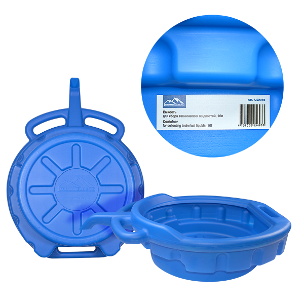 Пластиковый поддон на 16 л с носиком для сбора технических жидкостей из автомобиля путем слива самотёком. Поддон может применяться в автомастерских, на станциях технического обслуживания, в производственных цехах и других предприятиях по обслуживанию автомобильной и прочей техники, а также при самостоятельной замене технических жидкостей в автомобиле и в бытовых целях.