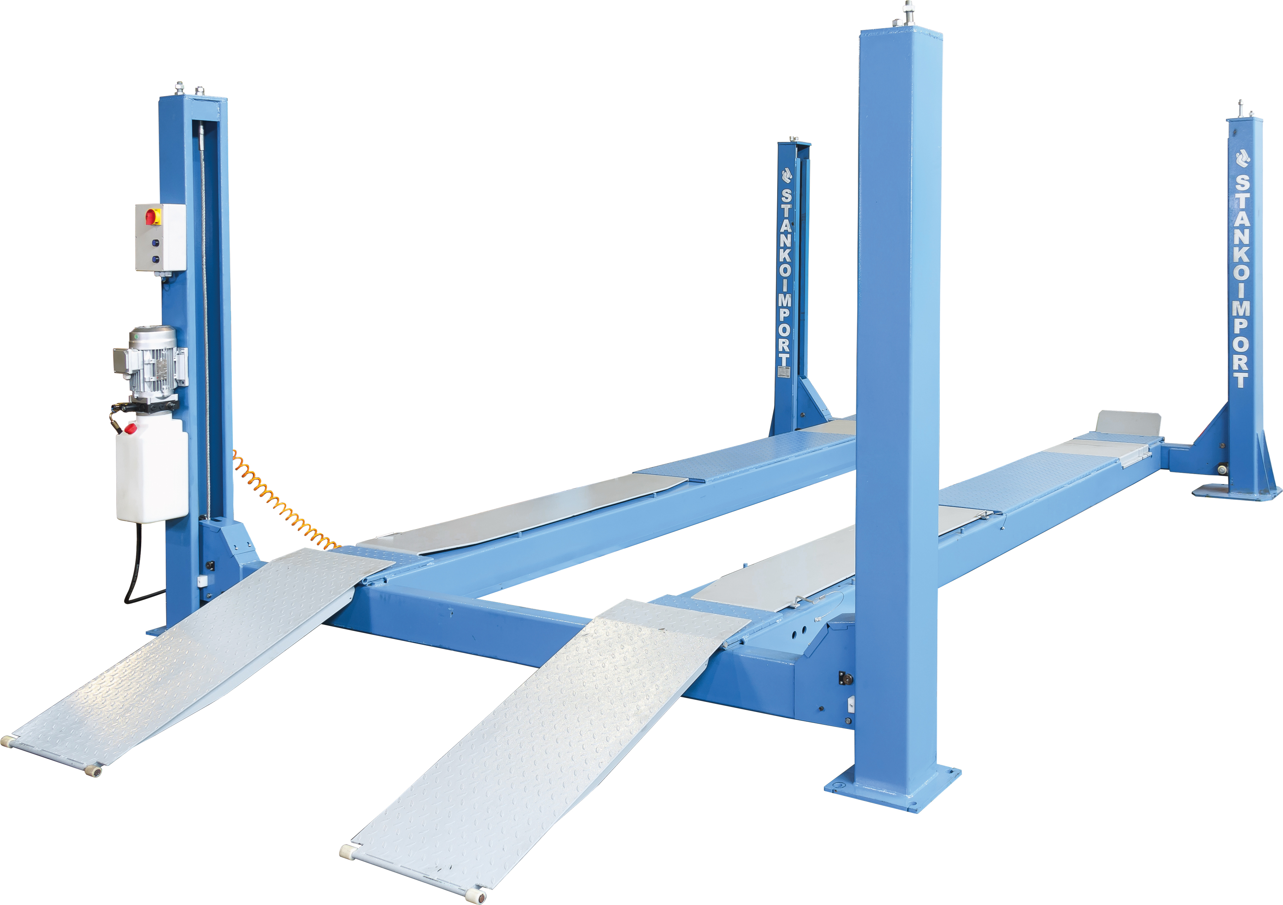 Подъемник 4-х стоечный электрогидравлический на 4, 5 тонны с П-образ. платформой, сход-развал, 380В