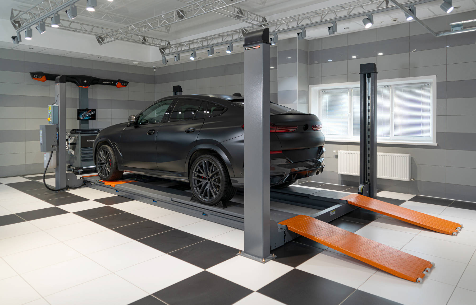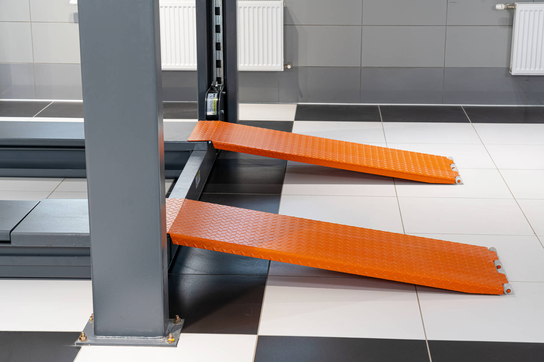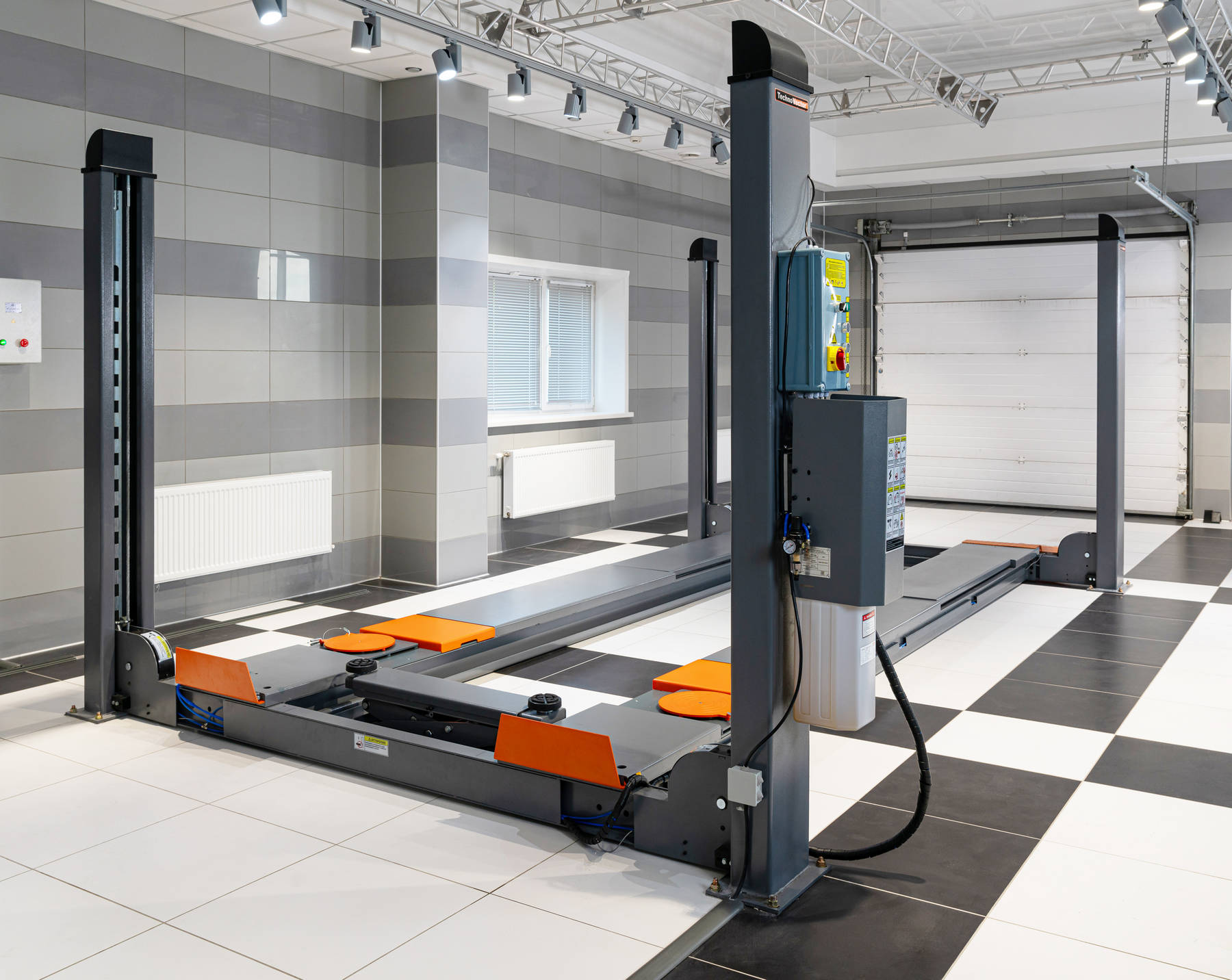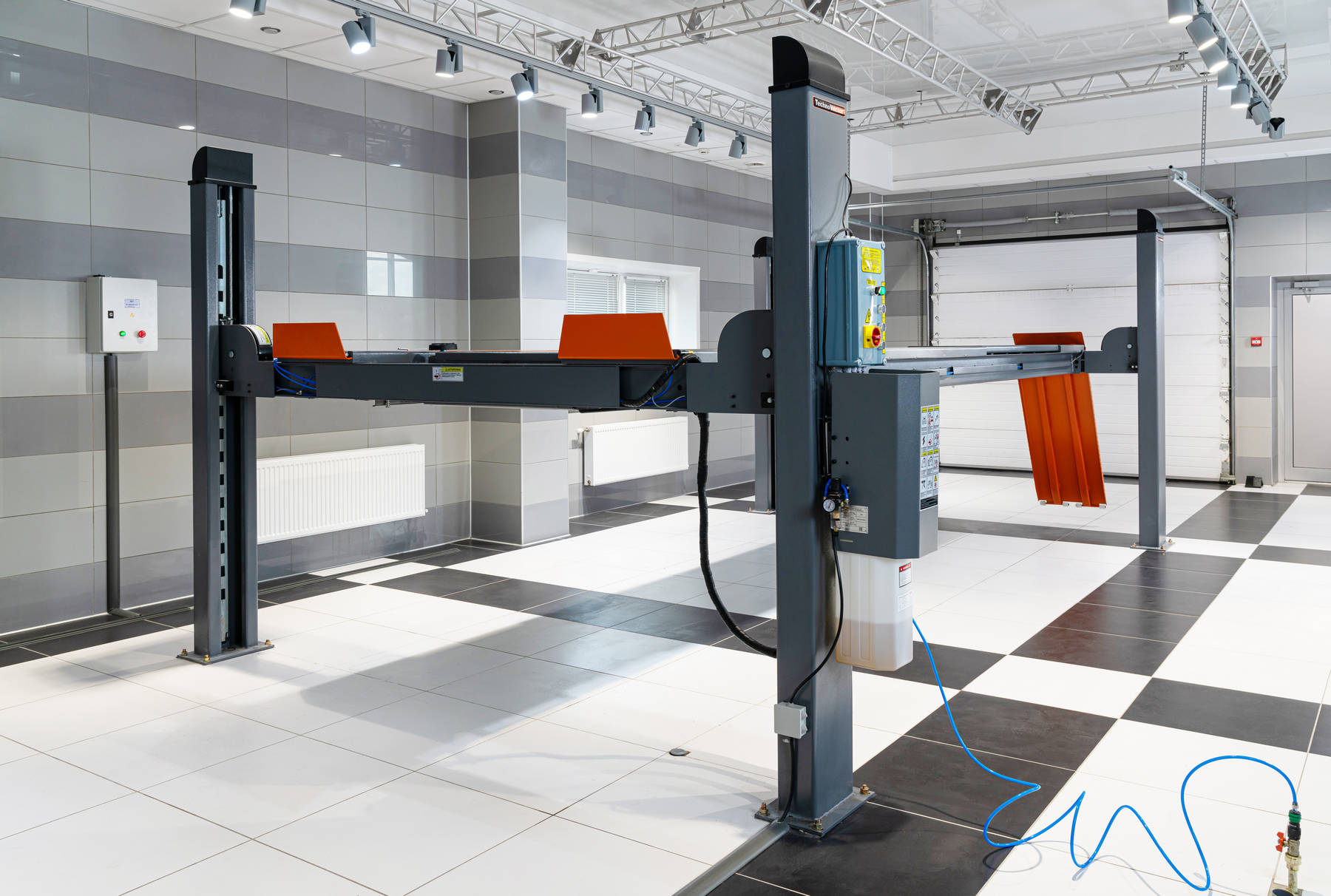 С пневмоблокировкой платформ. Для авто до 5 тонн. Высота подъёма 1700 мм