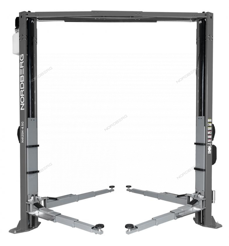 NORDBERG N4125H-4,5G — двухстоечный подъемник с верхней синхронизацией. Обеспечивает надежную фиксацию транспортного средства и равномерное распределение нагрузки.