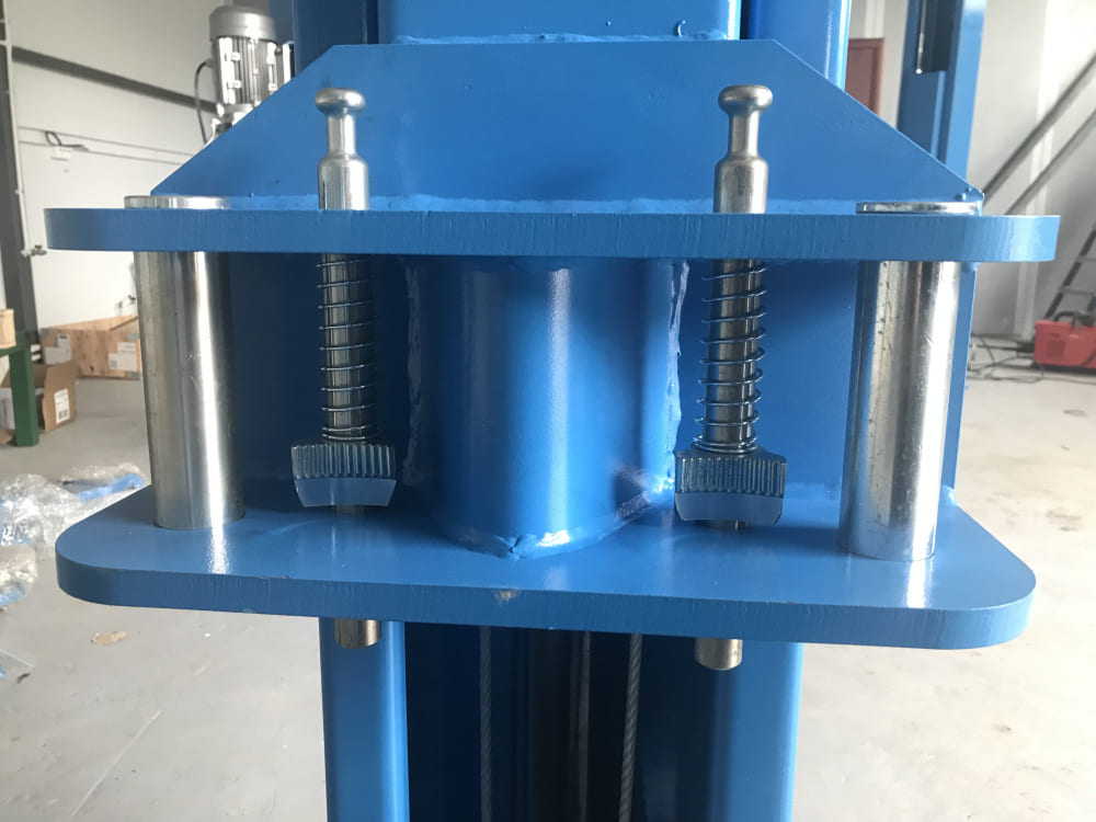 Простая и в тоже время надежная система механических стопоров со снятием рычагом на одной стойке обеспечивает безопасное удержание автомобиля в поднятом состоянии на протяжении всего времени ремонта.