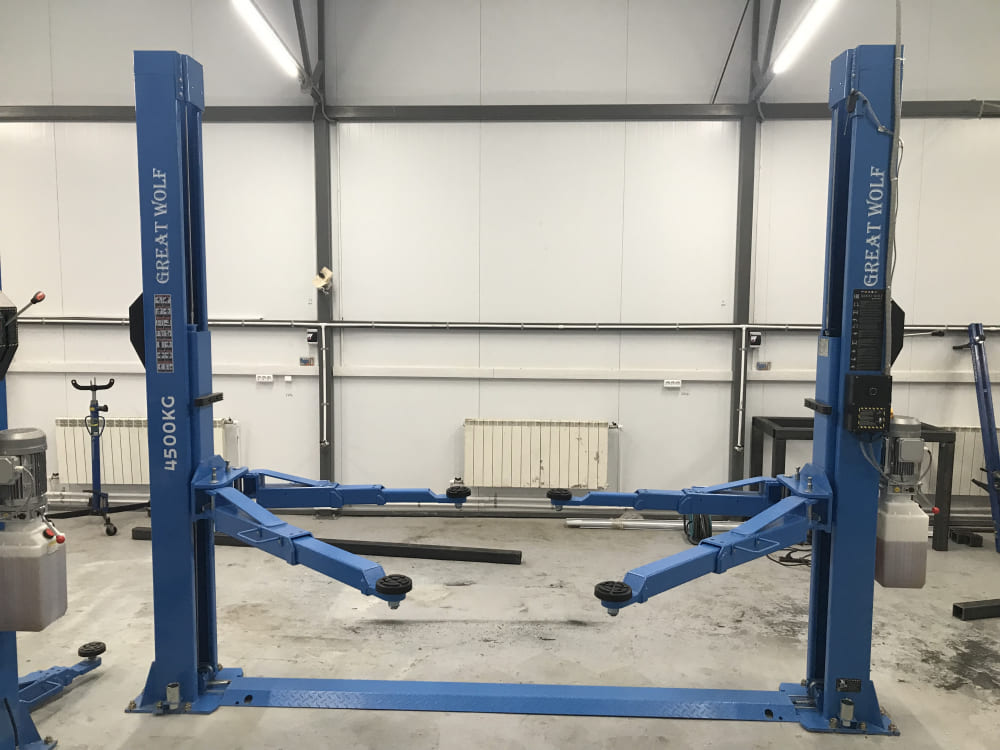 Представляем вашему вниманию двухстоечный электрогидравлический подъемник Great Wolf GW-E4500 380 грузоподъемностью 4500 кг с нижней синхронизацией. Данная модель рассчитана на работу в сети 380В.