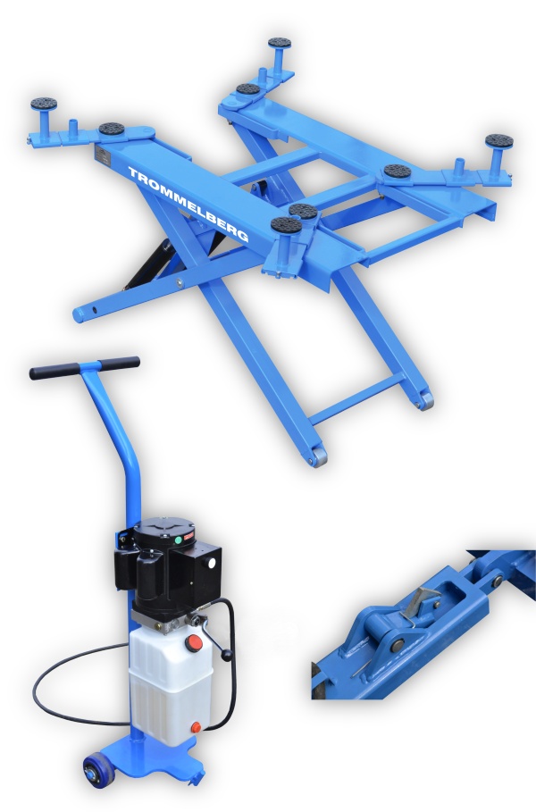 Мобильный ножничный подъемник с электрогидравлическим приводом для шиномонтажных и кузовных работ.