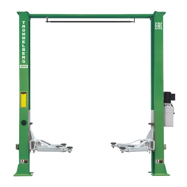 Электрогидравлический подъёмник Trommelberg ECO1140A с верхней синхронизацией грузоподъемностью 4000 кг и высотой подъема 1800 мм для обслуживания легковых автомобилей, минивэнов, пикапов и внедорожников. Оснащен надежной системой механической фиксации, предотвращающей неконтролируемое опускание подъёмных кареток.