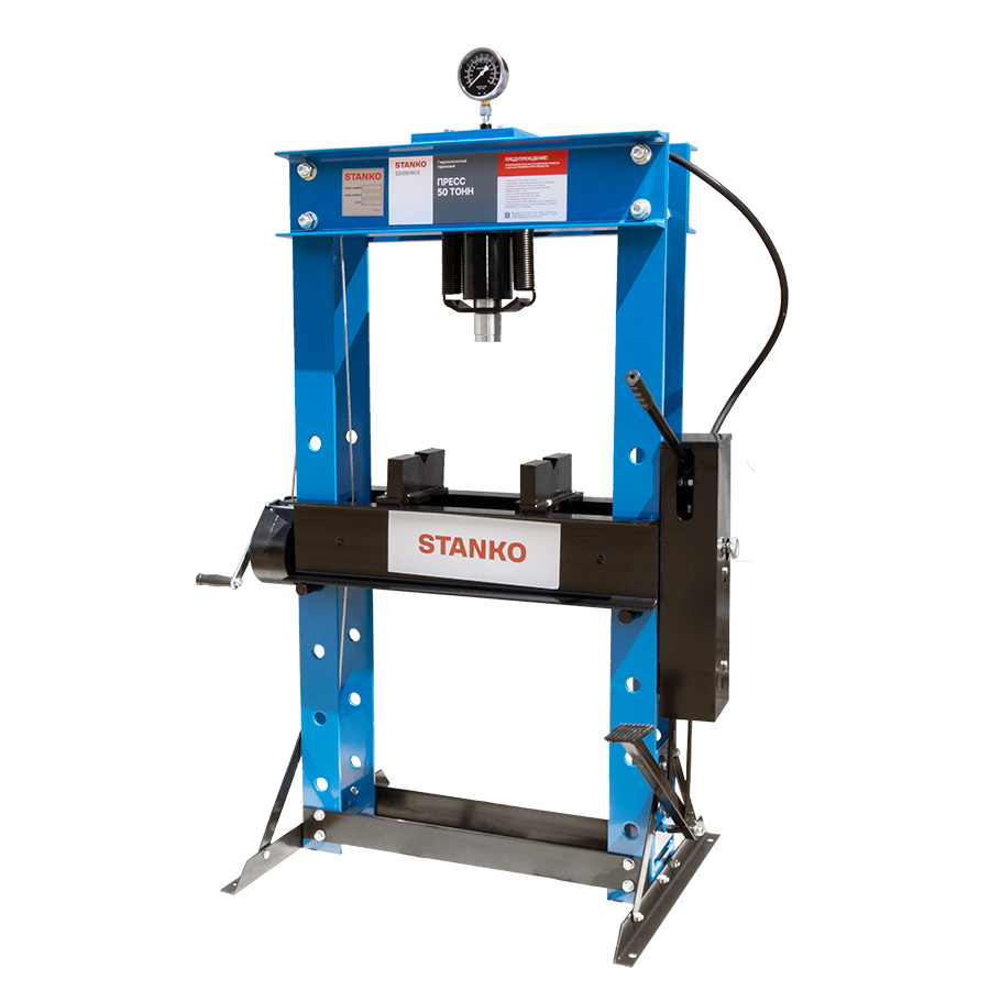 body{margin:0;padding:8px;} p{line-height:1.15;margin:0;white-space:pre-wrap;} ol,ul{margin-top:0;margin-bottom:0;} img{border:none;} li>p{display:inline;} table.blueTable {width: 100%; text-align: center; border-collapse: collapse;} table.blueTable td, table.blueTable th {border: 0px solid #AAAAAA; padding: 1px 1px;} table.blueTable tbody td { font-size: 13px;} table.blueTable thead {background: #EEEEEE;background: -moz-linear-gradient(top, #EEEEEE 0%, #cecece 66%, #EEEEEE 100%);background: -webkit-linear-gradient(top, #EEEEEE 0%, #cecece 66%, #C9C9C9 100%); background: linear-gradient(to bottom, #EEEEEE 0%, #EEEEEE 66%, #EEEEEE 100%);} table.blueTable thead th { font-size: 12px;font-weight: normal;color: #000000; text-align: center;border-left: 1px solid #EEEEEE;} table.blueTable thead th:first-child { border-left: none;} table.blueTable tfoot td {font-size: 12px;} table.blueTable1 {background-color: #FFFFFF;width: 100%; text-align: center; border-collapse: collapse;} table.blueTable1 td, table.blueTable th {border: 0px solid #AAAAAA;padding: 3px 2px;} table.blueTable1 tbody td {font-size: 13px;} table.blueTable1 tr:nth-child(odd) {background: #EEEEEE;} table.blueTable1 tfoot td {font-size: 14px;} table.blueTable1 tfoot .links { text-align: right;} table.blueTable1 tfoot .links a{display: inline-block;background: #1C6EA4; color: #FFFFFF; padding: 2px 8px; border-radius: 5px;} table.blueTable2 {background-color: #FFFFFF; width: 100%;text-align: left;border-collapse: collapse;} table.blueTable2 td, table.blueTable th { border: 0px solid #AAAAAA;padding: 3px 2px;} table.blueTable2 tbody td {font-size: 13px;} table.blueTable2 tr:nth-child(odd) { background: #EEEEEE;} table.blueTable2 tfoot td { font-size: 14px;} table.blueTable2 tfoot .links { text-align: right;} table.blueTable2 tfoot .links a{display: inline-block;background: #1C6EA4;color: #FFFFFF;padding: 2px 8px;border-radius: 5px;} Назначение: Гаражный пресс предназначен для запрессовки или выпрессовки втулок, коленвала, снятия или установки подшипников для автомобиля, сжатия всевозможных деталей, для гибки арматуры или листового металла. Особенности: Подвижной цилиндр. Комбинированный привод. Гидравлический насос имеет две скорости. Лебедка для перемещения рабочего стола. Устойчивость манометра к колебаниям давления за счет наполнения компенсирующей жидкостью. Сварная рама пресса увеличивает срок службы. Ширина общая (А) Глубина (B) Общая высота(D) Ширина рамы Ход станины (F1-F2) Ширина рабочего стола(Е) Глубина рабочего стола(F) 1045mm 800mm 1830mm 850mm 230-860mm 650mm 207mm Основные характеристики Усилие, т Исполнение Привод насоса Ход поршня, мм 50 Напольный Ручной/ножной 230mm Упаковка: Место 1 Длина, см 189 Ширина, см 94 Высота, см 40 Вес, кг 253