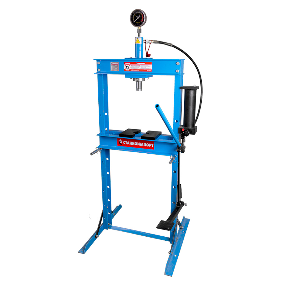 body{margin:0;padding:8px;} p{line-height:1.15;margin:0;white-space:pre-wrap;} ol,ul{margin-top:0;margin-bottom:0;} img{border:none;} li>p{display:inline;} table.blueTable {width: 100%; text-align: center; border-collapse: collapse;} table.blueTable td, table.blueTable th {border: 0px solid #AAAAAA; padding: 1px 1px;} table.blueTable tbody td { font-size: 13px;} table.blueTable thead {background: #EEEEEE;background: -moz-linear-gradient(top, #EEEEEE 0%, #cecece 66%, #EEEEEE 100%);background: -webkit-linear-gradient(top, #EEEEEE 0%, #cecece 66%, #C9C9C9 100%); background: linear-gradient(to bottom, #EEEEEE 0%, #EEEEEE 66%, #EEEEEE 100%);} table.blueTable thead th { font-size: 12px;font-weight: normal;color: #000000; text-align: center;border-left: 1px solid #EEEEEE;} table.blueTable thead th:first-child { border-left: none;} table.blueTable tfoot td {font-size: 12px;} table.blueTable1 {background-color: #FFFFFF;width: 100%; text-align: center; border-collapse: collapse;} table.blueTable1 td, table.blueTable th {border: 0px solid #AAAAAA;padding: 3px 2px;} table.blueTable1 tbody td {font-size: 13px;} table.blueTable1 tr:nth-child(odd) {background: #EEEEEE;} table.blueTable1 tfoot td {font-size: 14px;} table.blueTable1 tfoot .links { text-align: right;} table.blueTable1 tfoot .links a{display: inline-block;background: #1C6EA4; color: #FFFFFF; padding: 2px 8px; border-radius: 5px;} table.blueTable2 {background-color: #FFFFFF; width: 100%;text-align: left;border-collapse: collapse;} table.blueTable2 td, table.blueTable th { border: 0px solid #AAAAAA;padding: 3px 2px;} table.blueTable2 tbody td {font-size: 13px;} table.blueTable2 tr:nth-child(odd) { background: #EEEEEE;} table.blueTable2 tfoot td { font-size: 14px;} table.blueTable2 tfoot .links { text-align: right;} table.blueTable2 tfoot .links a{display: inline-block;background: #1C6EA4;color: #FFFFFF;padding: 2px 8px;border-radius: 5px;} Назначение: Гаражный пресс предназначен для запрессовки или выпрессовки втулок, коленвала, снятия или установки подшипников для автомобиля, сжатия всевозможных деталей, для гибки арматуры или листового металла. Особенности: Подвижной цилиндр. Армированный гидравлический шланг. Устойчивость манометра к колебаниям давления за счет наполнения компенсирующей жидкостью. Возможно опционально установить пуансоны. Комбинированный привод. Ширина (А) Глубина (B) Высота рамы(С) Общая высота(D) Глубина рамы (F) Ход станины (F1-F2) Ширина рабочего стола(Е) 690 700 1351 1656 80 77-917 514 Основные характеристики Усилие, т 12 Исполнение напольный Привод насоса ручной/пневмо Ход поршня, мм 180 Упаковка: Место 1 Место 2 Длина, см 137 64,5 Ширина, см 17 30,5 Высота, см 21 17 Вес, кг 48 25