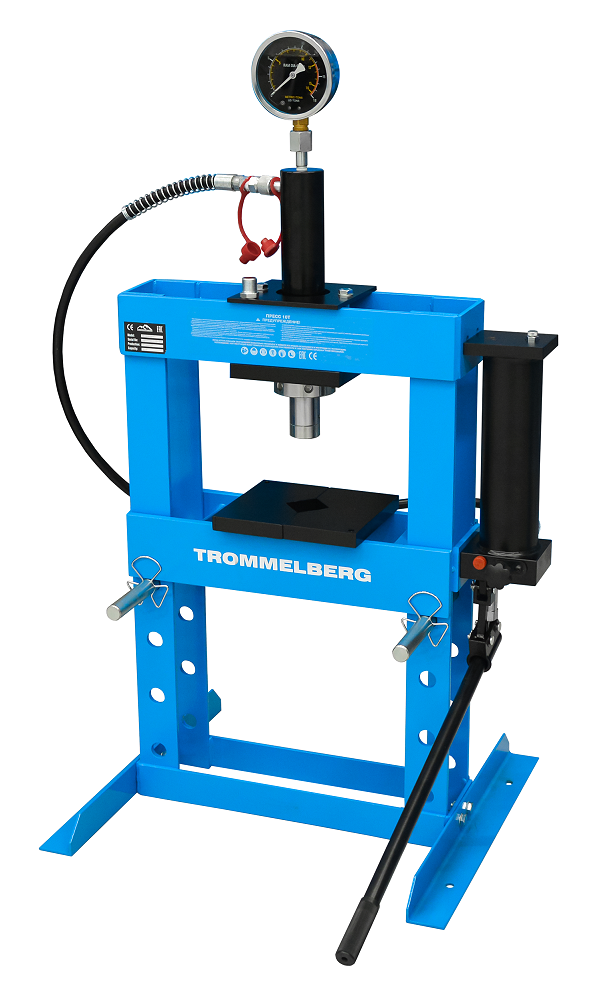 Настольный гидравлический пресс Trommelberg на 10 тонн с ручным приводом для снятия и установки зубчатых колес, универсальных соединений, шкивов, ступичных подшипников, поршневых пальцев, сгибания, распрямления и соединения деталей.