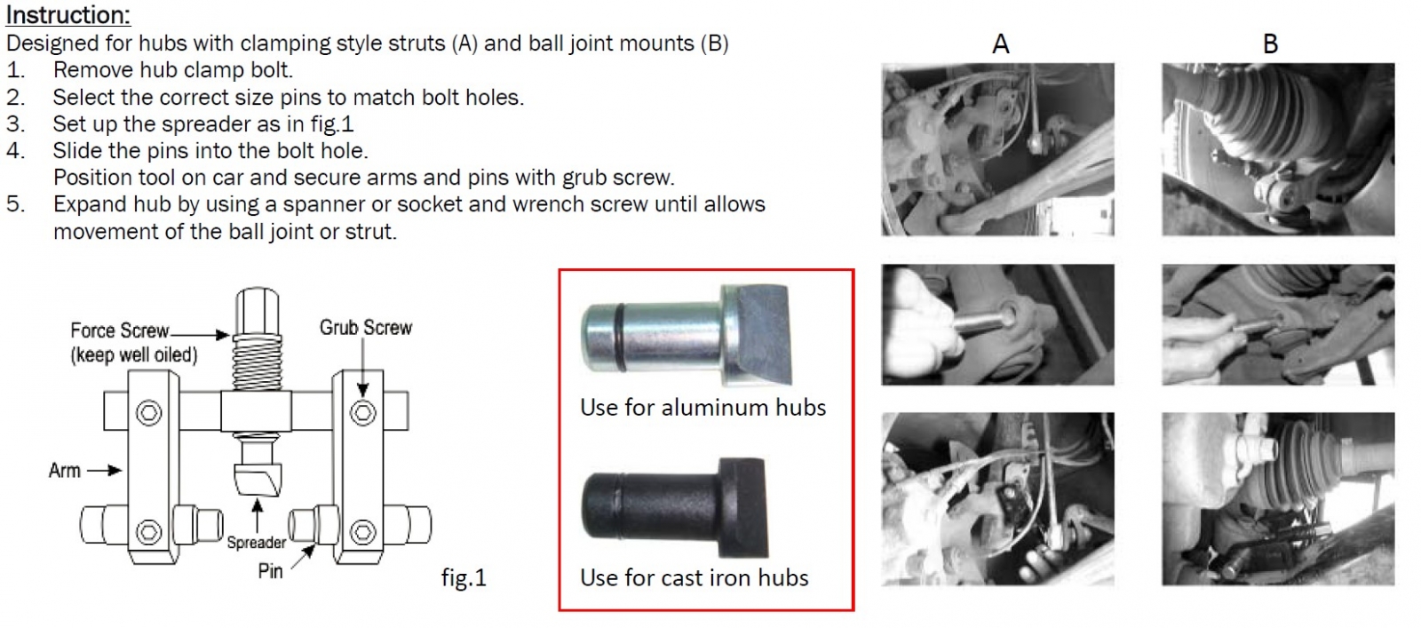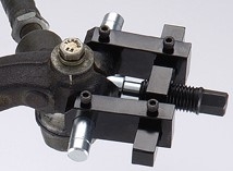 KA-4440 Приспособление для расклинивания посадочных мест на поворотном кулаке Применяется для расклинивания поворотных кулаков при проведении работ по замене амортизаторов. Использование данного приспособления существенно упрощает процедуру извлечения амортизатора из кулака. Характеристики: Материал изготовления: Cr-Mo сталь.