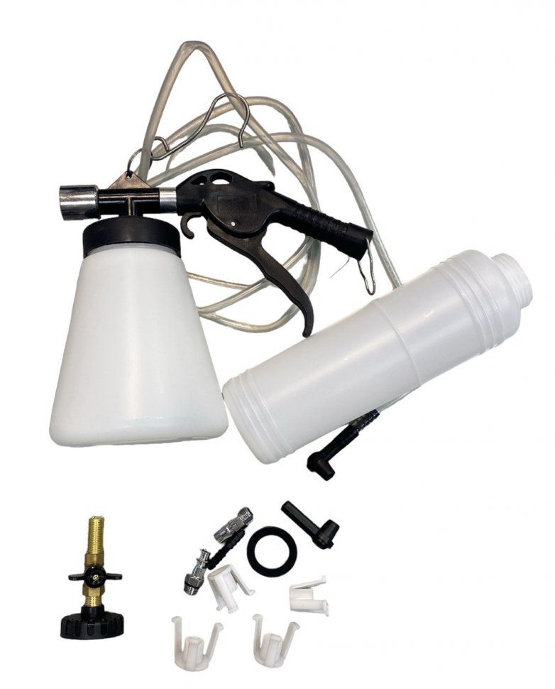 Применение: - для замены, тормозной жидкости; - для прокачки тормозной системы; - необходимо подключение сжатого воздуха. Комплектация: емкость для вакуумной замены тормозной жидкости, 1 л; емкость для старой тормозной жидкости, 1 л.
