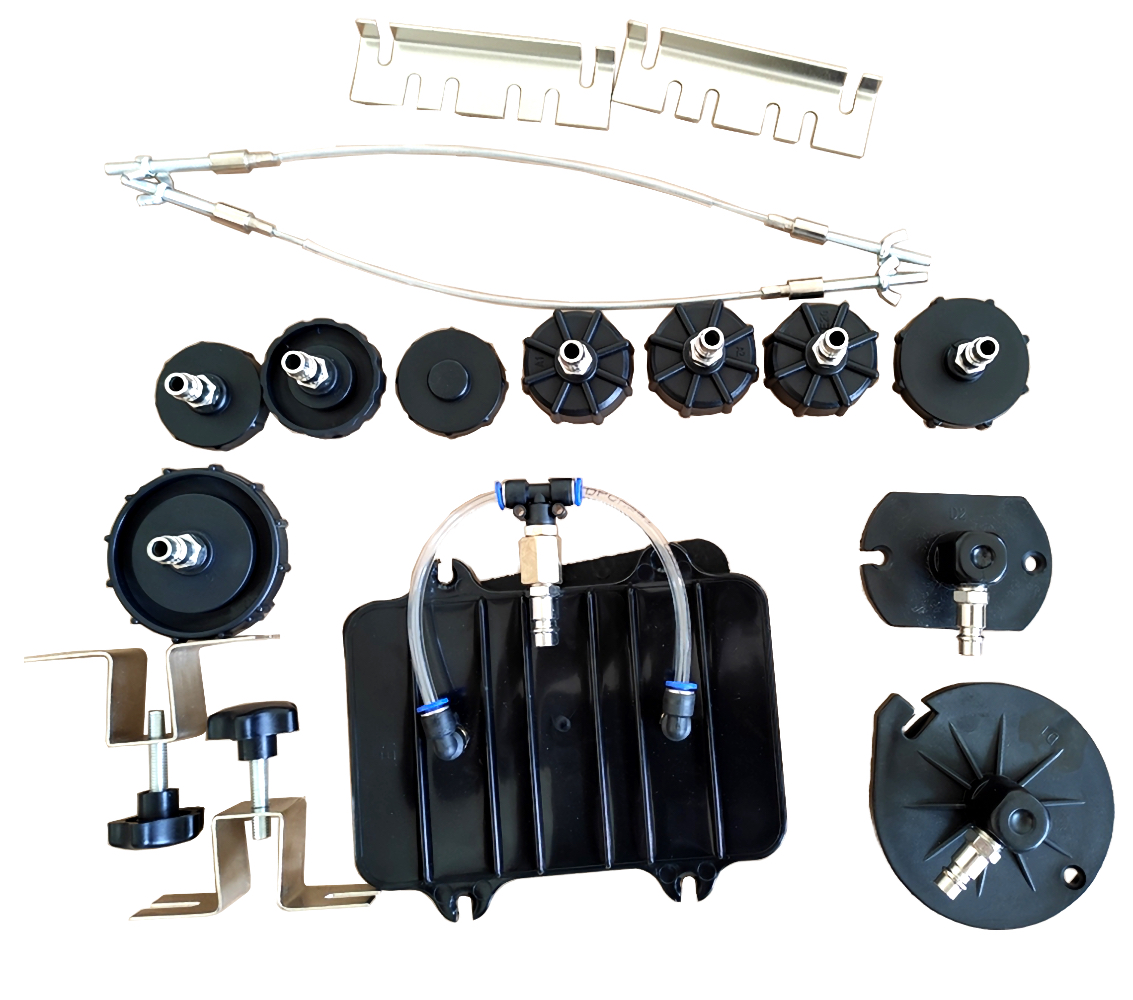 Комплектация устройства позволяет заменить тормозную жидкость с последующей прокачкой системы одному человеку. Благодаря продуманной конструкции оборудования абсолютно исключено попадание воздуха в тормозную систему машины. Создает мощный вакуум для промывки гидравлических тормозов и сцепления. Качественный манометр регулирует рабочее давление устройства.